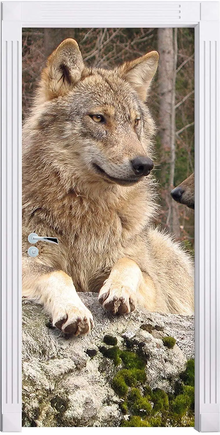 3D настенная наклейка на дверь из коричневого волка, обои с принтом, наклейка на стену, декоративная настенная фотопленка, самоклеящаяся пленка на дверь