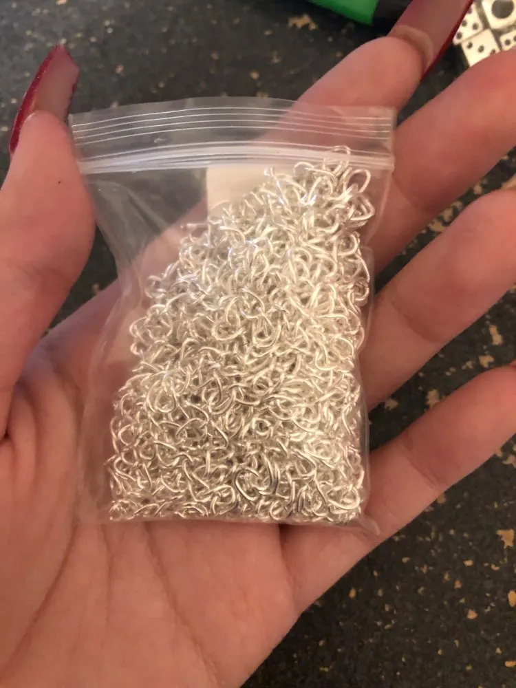Хороший продукт и соответствует описанию! Отлично подходит для поделок своими руками. Моя единственная проблема в том, что это более светлый цвет, чем у других серебряных ювелирных изделий, но это не так большая сделка. Я все еще люблю их!