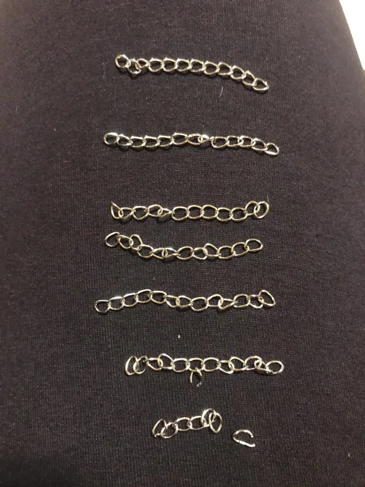Цепочки хорошего качества. Длина цепочек 7 см. Брала цепочки всех четырёх цветов. Товар и продавца рекомендую. Очень довольна заказом.