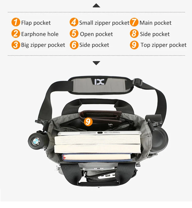 Сумка-мессенджер Мужская, нейлоновая, с отверстием для наушников, водонепроницаемая