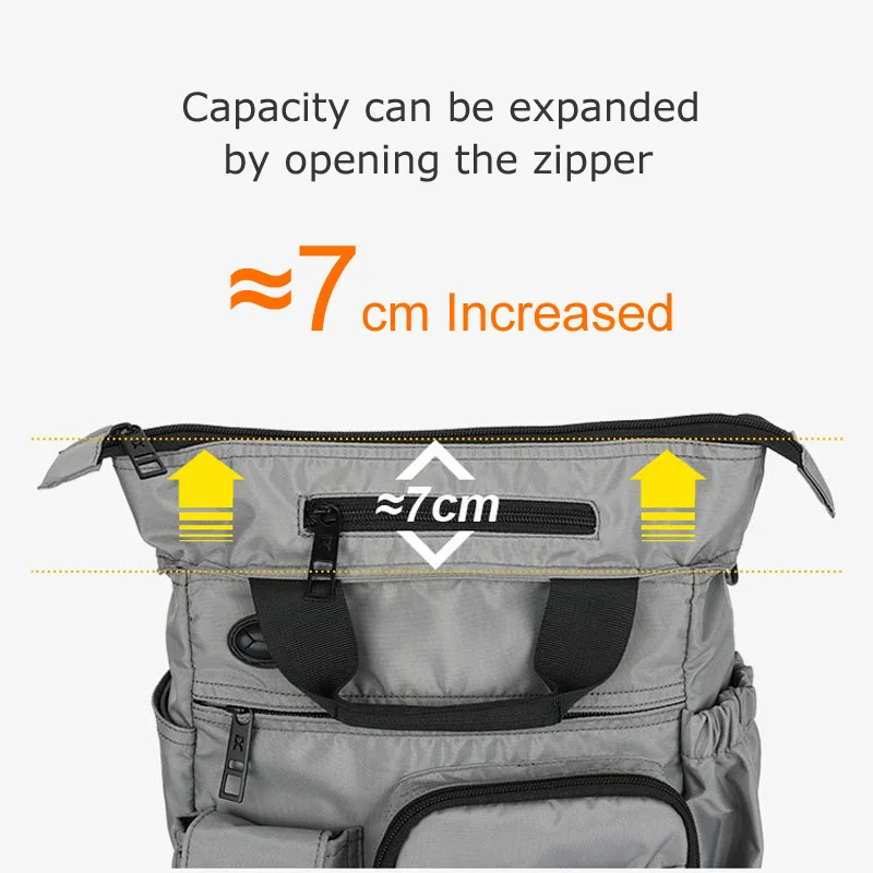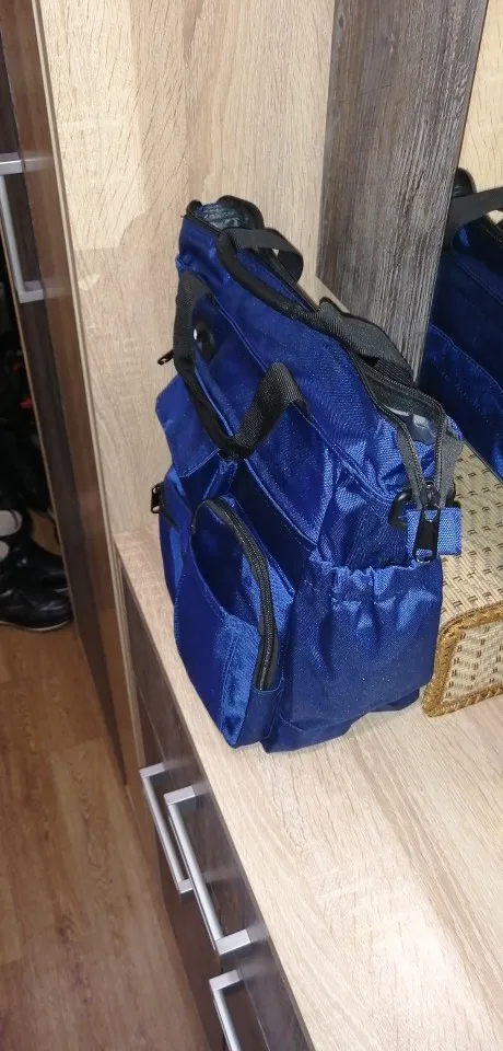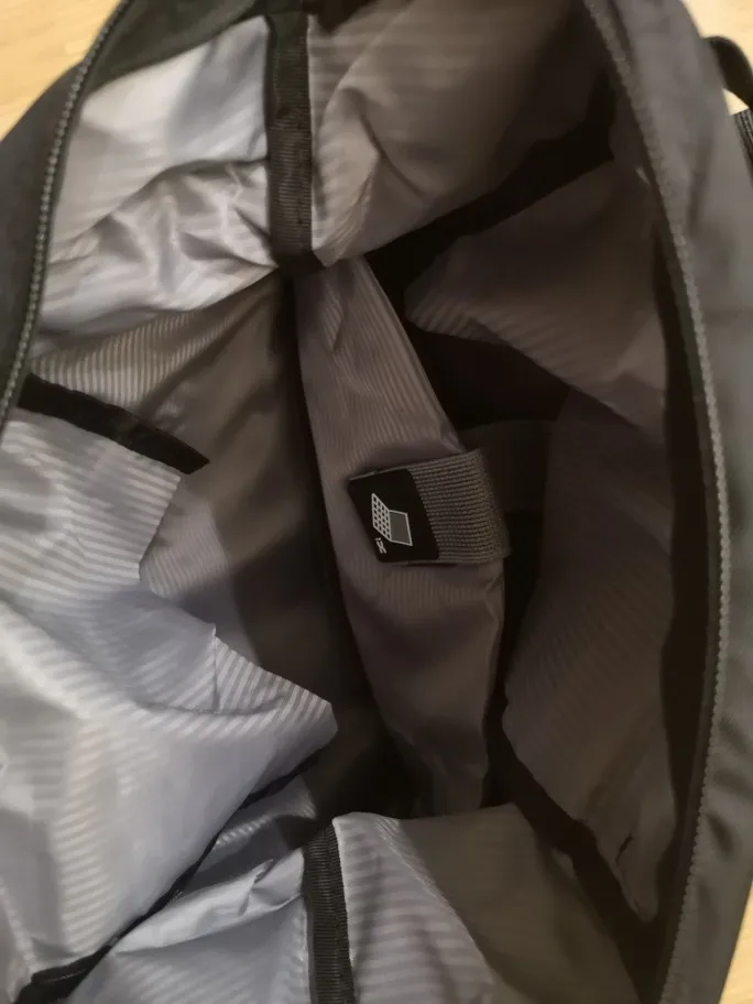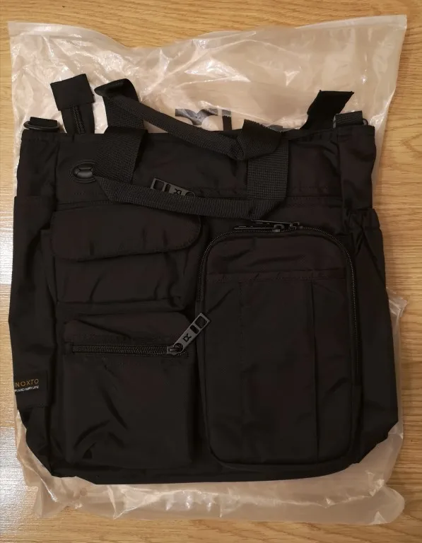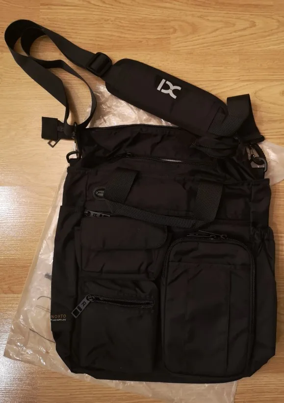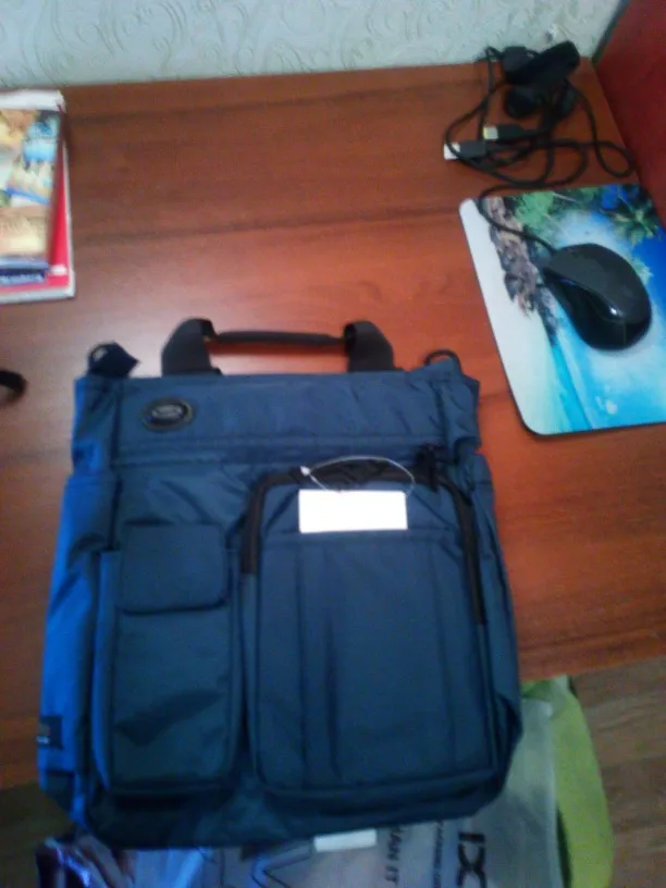 Доставка заняла ~ 2.5 недели. Пришло в пакете, который был прорезан, с дыркой и не было держащей молнию штучки для открытия пакета, пришлось порвать пакет , чтобы выбрать сумку). Сумка хорошая. Много отделений, что и хотели. Сбоку карманы для бутылки, зонта, других мелочей, где с молнией, где на липучке. Внутри место для ноутбука и отмечено на липучке, разделено, кармашки с молниями и без. Места в сумке много, не проверяли на водонепроницаемость, на вид всё в порядке.