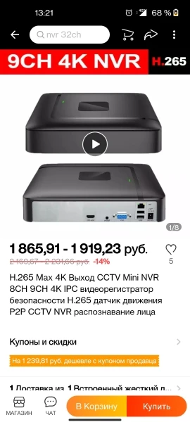 Страна: RU Plug Standard: EU Plug Video Input: 8CH Ships From: China Build-in HDD: None Доставка: Standard Shipping 17.02.2022