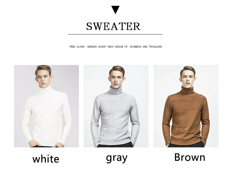 Свитер Мужской трикотажный, с высоким воротником и длинным рукавом, Осень-зима, 2020