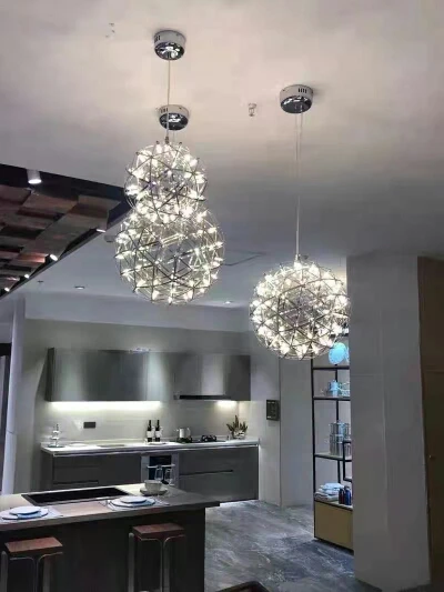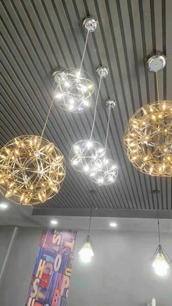 Современный потолочный светодиодный светильник в стиле лофт, люстра с искровым шаром из нержавеющей стали, фейерверк, круглый подвесной светильник