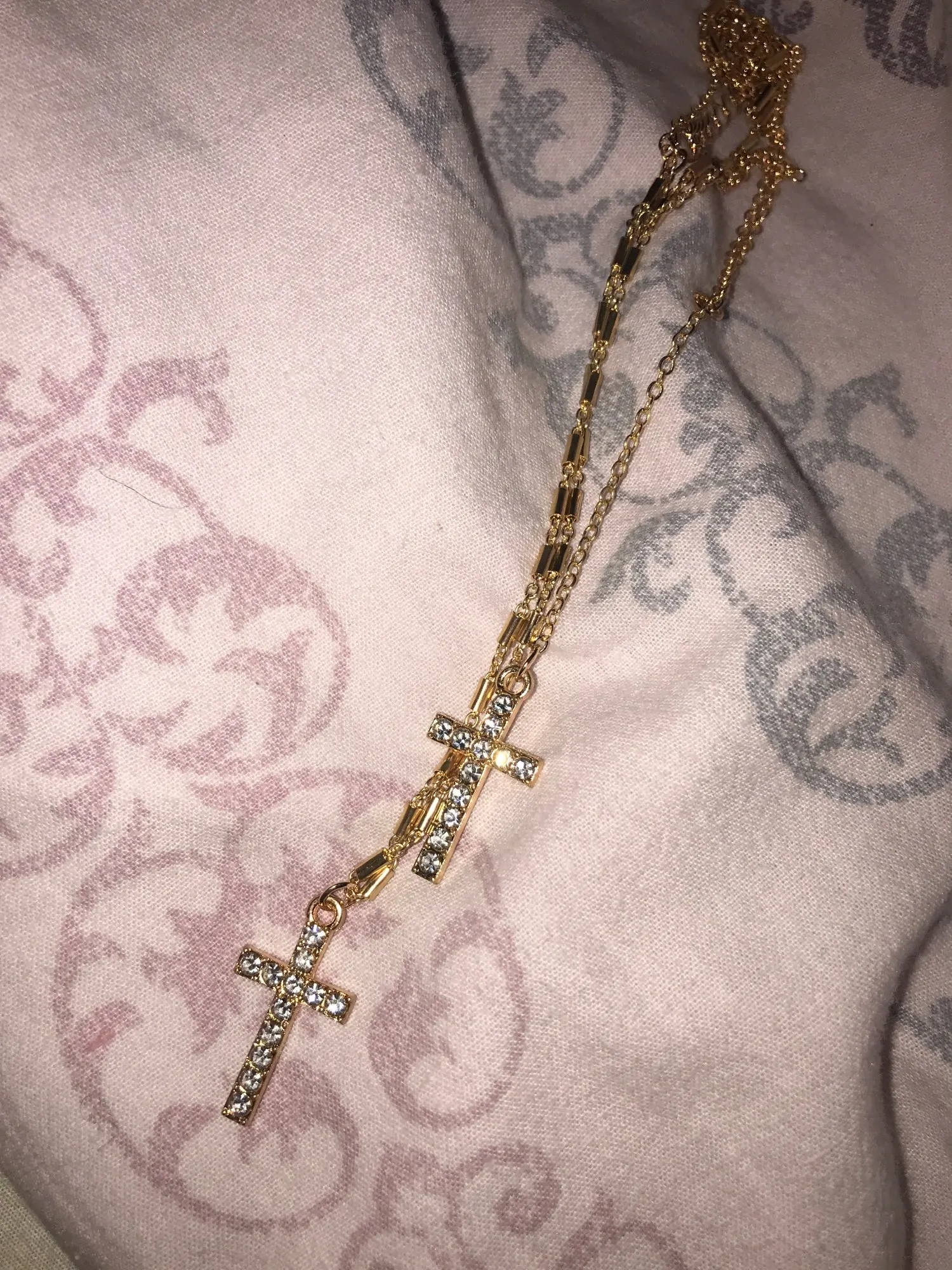 Ожерелье нормальное как изделие, но зачем было описывать его, как золотое украшение (то есть желтое - под золото). Крестики и цепочки белые (под серебро). Или продавец перепутал или описание не соответствует.