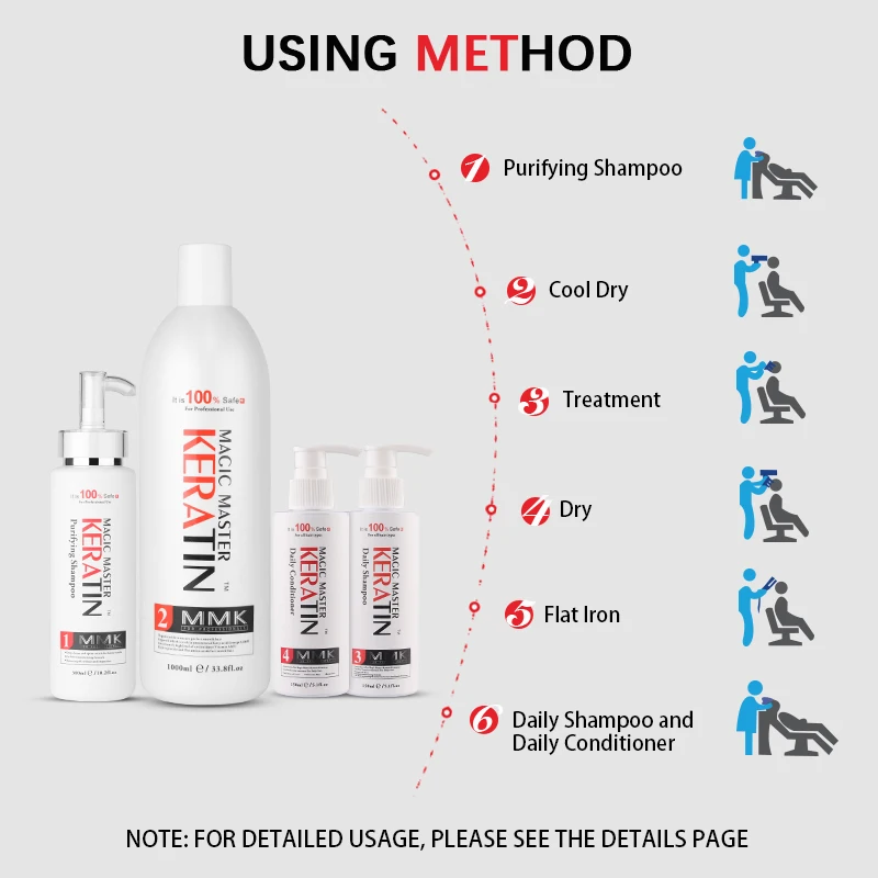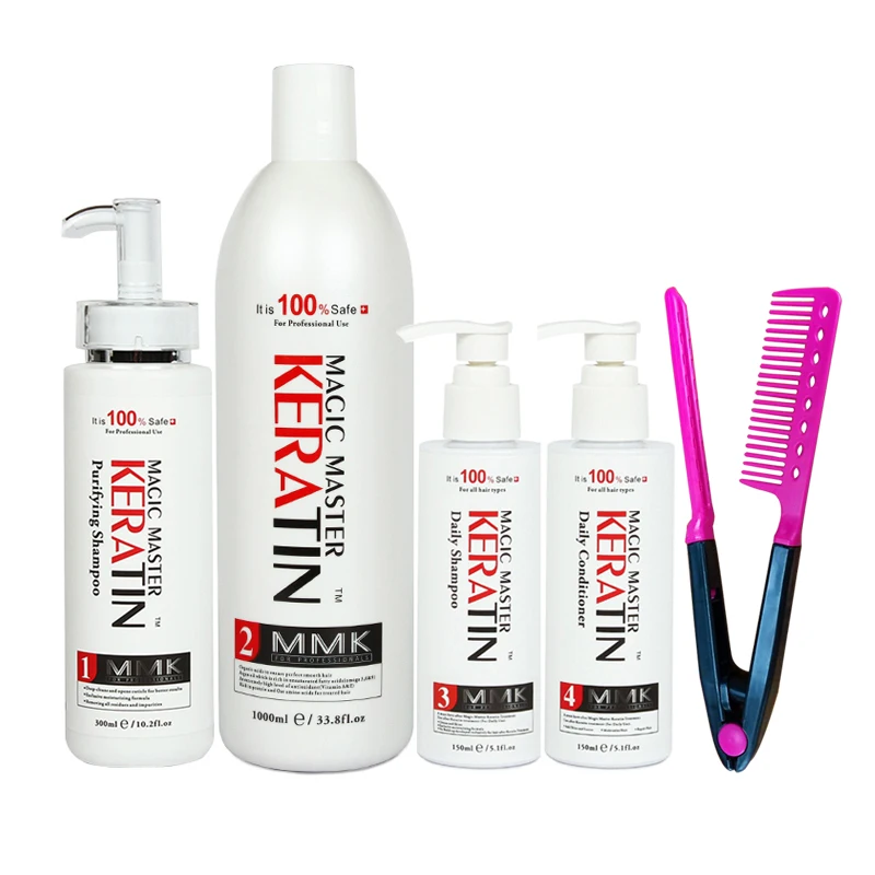 Без формалина Magic Master Кератиновое лечение + очищающий шампунь + Ежедневный Шампунь + кондиционер для выпрямления волос + бесплатная красная расческа