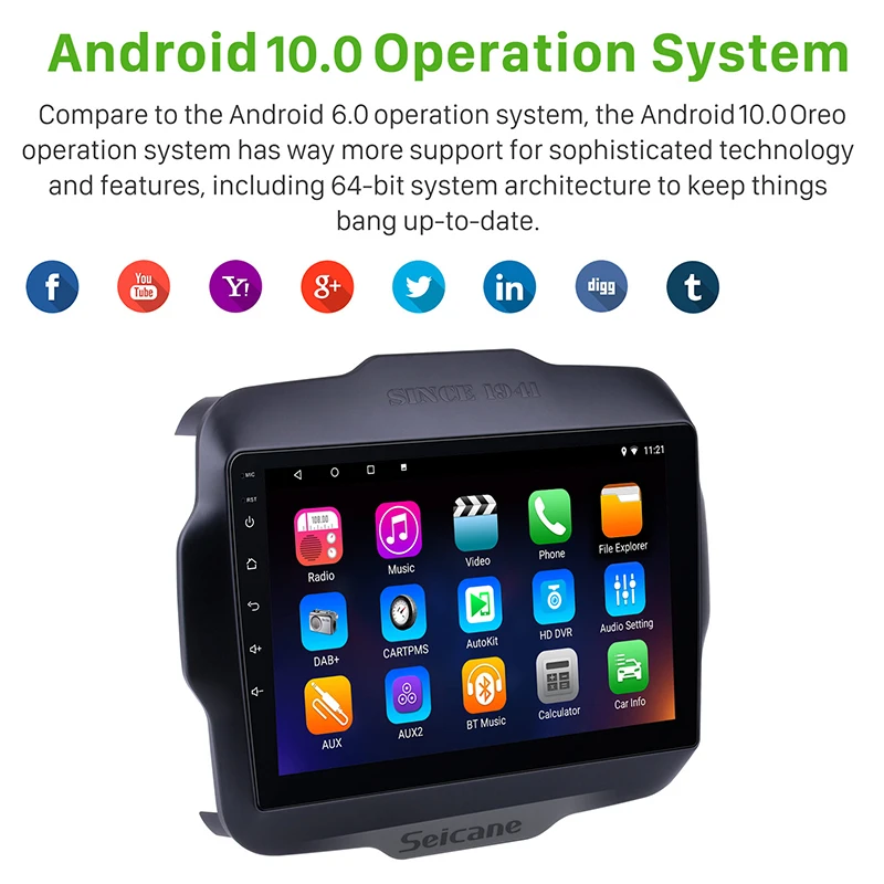 Seicane автомобильный Android 10,0 GPS навигация Bluetooth для 2016 Jeep Renegade WiFi Мульти-сенсорный экран 9 дюймов 2DIN автомобильный Радио плеер