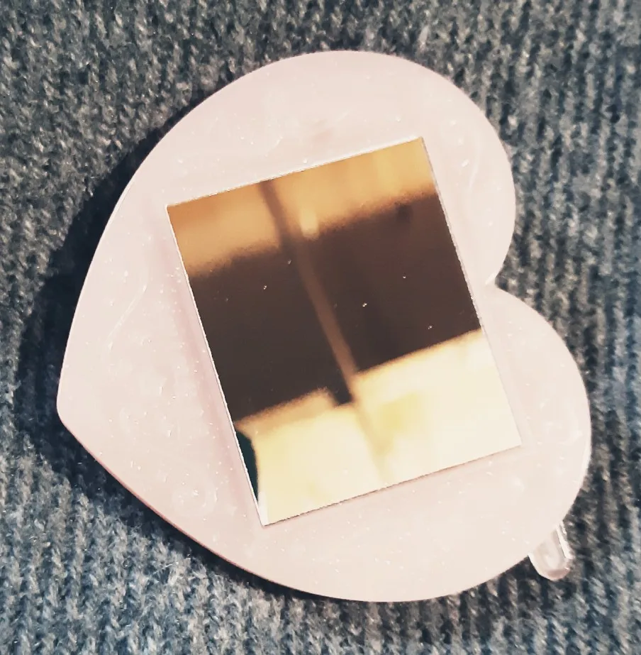 Красивое маленькое зеркало, без царапин и пятен. Выглядит точно так же, как на картинке, даже есть Милая расческа, которая скользит. Я немного беспокоюсь о будущих царапинах или поломках только потому, что нет ничего, чтобы покрыть зеркало, чтобы защитить его, но это определенно то, что я закажу снова. Спасибо.