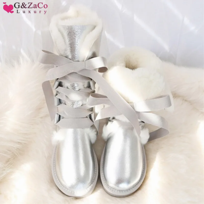 G Zaco сапоги до колена из натуральной овечьей кожи обувь кожаные зимние сапоги австралийские женские шерстяные сапоги зимние сапоги на шнуровке с овечьим мехом