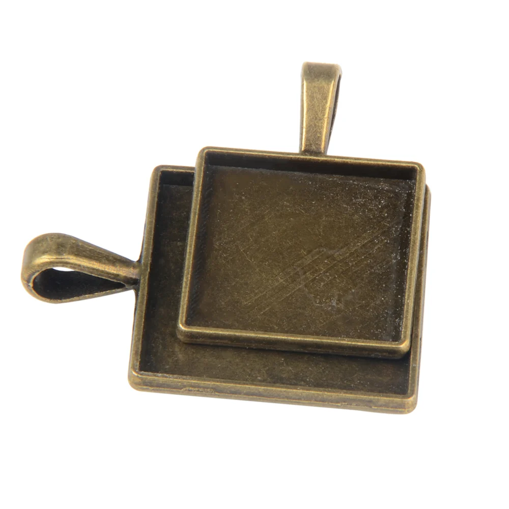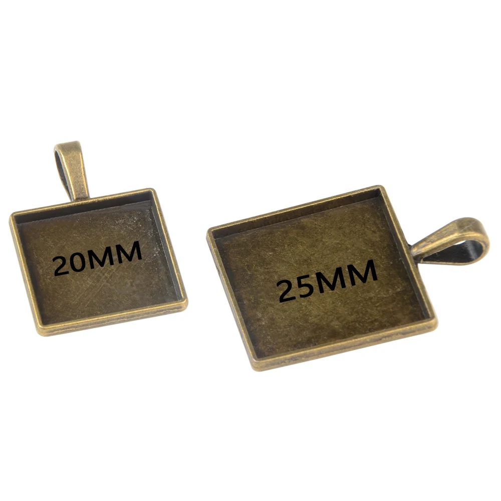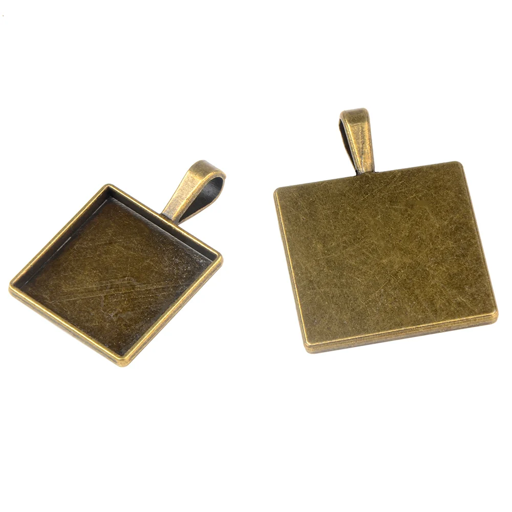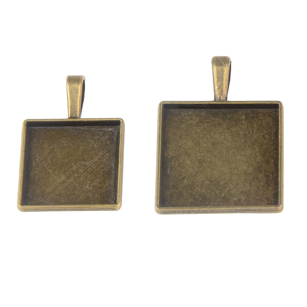 LFPU квадратные кабошоны 20 мм 25 мм базовые настройки античная бронза подвеска рамка лоток для DIY стекла кабошона ожерелье