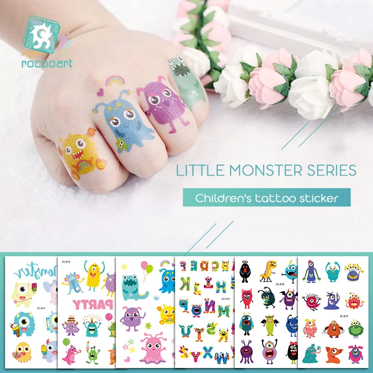 Rocooart детская Татуировка маленький монстр поддельные татуировки детские подарки временные татуировки наклейки мультфильм Tatuagem вечерние Tatuaje Flash Taty