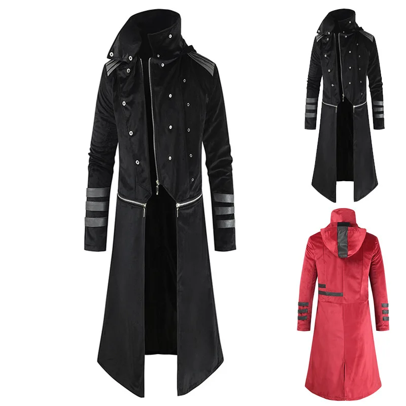 Размера плюс S-5XL средневековый пальто новая Скорпион мужские пальто Длинная Куртка в готическом стиле стимпанк Тренч с капюшоном 5794