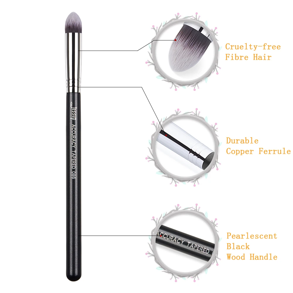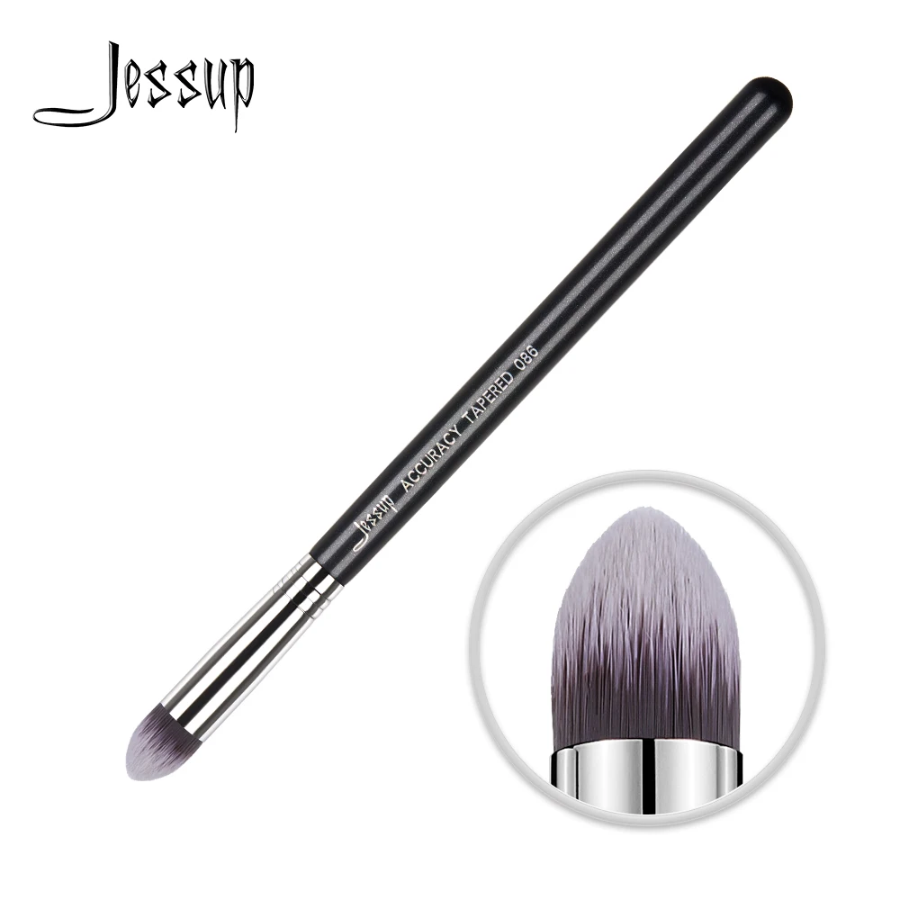 Jessup аккуратный конический консилер, одна Кисть для макияжа, 1 шт., профессиональные волоконные волосы, деревянная ручка, черно-серебристый косметический инструмент 086