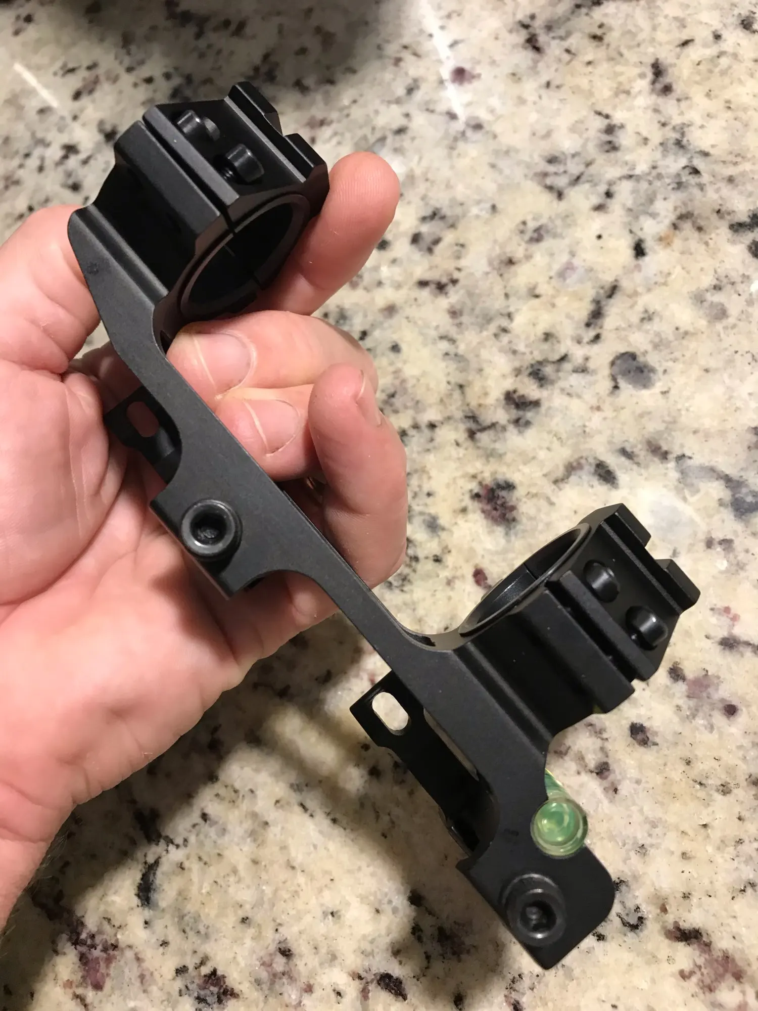 Крепление качественное, надёжное и в то же время лёгкое, сидит на планке очень крепко, рычажки работают чётко. Но есть один нюанс - изготовители зачем-то разместили рычажки быстросъёмного крепления на правой стороне, с которой происходит экстракция гильзы при стрельбе. Эти рычажки могут привести к невыходу гильзы и прочим проблемам. Я, конечно, переставил их на левую сторону, но теперь прижимные подвижные сегменты прижимаются не рычажками, имеющими плоское основание, а коническими гайками с гровером, от чего их косит. Так что думайте сами.