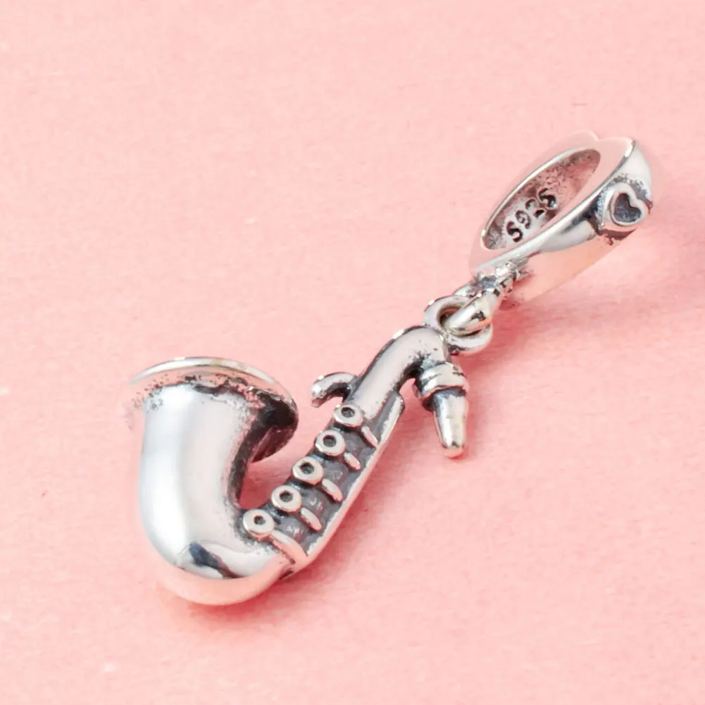 NBSAMENG 100% Стерлинговое Серебро 925 пробы бусы Шарм Любовь Музыка кулон в виде саксофона бусины подходят для женщин браслеты и ювелирные изделия
