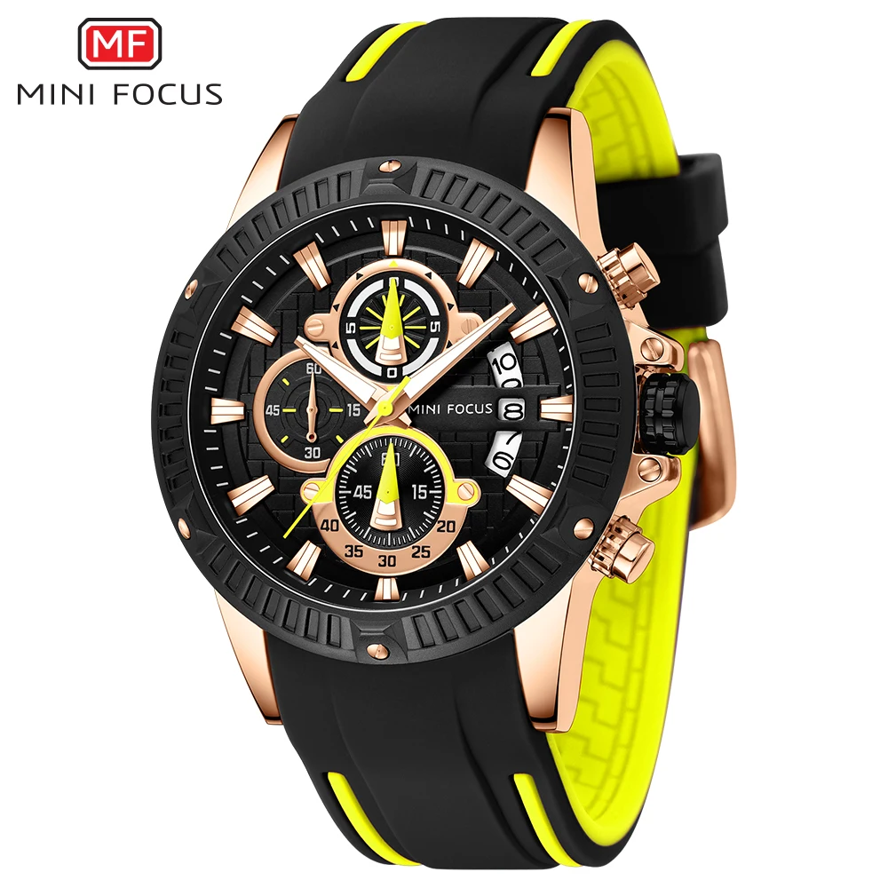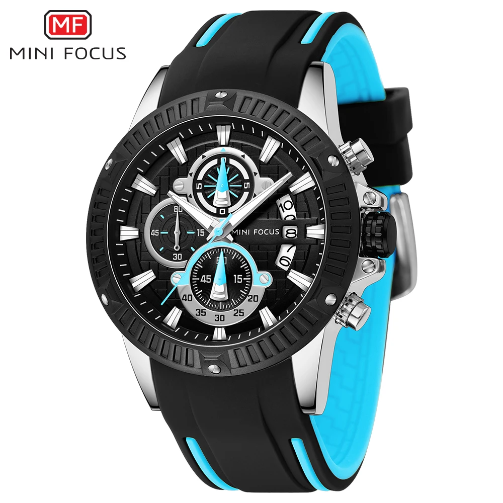 Роскошные мужские часы MINI FOCUSLuxuryБренд: мини-фокус (мини-фокус)Стиль: Модный, Повседневный, деловой, роскошный, спортивныйОсновная особенность:1. Часы с роскошным дизайном, модный стиль платья2. Новые модные часы с резиновым ремешком.3. Гарантия на передвижение 12 месяцевХарактеристики:Диаметр циферблата: 47 ммТолщина корпуса: 13,7 ммДлина Часов: 240 ммШирина ремешка: 24 ммВес часов: 111 гМеханизм: кварцевый (требуется батарейка)Материал зеркала: HardlexТип застежки: ПряжкаФункция: 1/10 секундный дополнительный циферблат; Минутный дополнительный циферблат; Второй вспомогательный циферблат; Отображение датыСветящиеся стрелкиВодонепроницаемость: Повседневная Водонепроницаемость (не для плавания или душа)Подходящий Случай:Идеально подходит для любых случаев и мероприятий вечерние, годовщины, бизнеса, повседневной носки, занятий спортом на открытом воздухе, занятий в помещении или повседневного использованияПосылка1 х часы (подарочная коробка опционально)