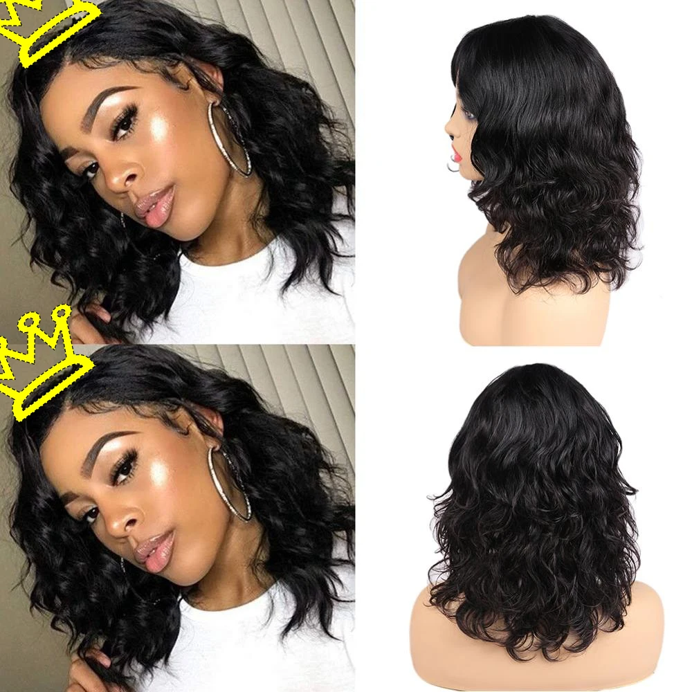 Бразильские парики HANNE из натуральных волос на шнурке, средняя часть, для чернокожих женщин, Remy, естественная волна, короткий парик, предварительно выщипанные, 150% Denisty