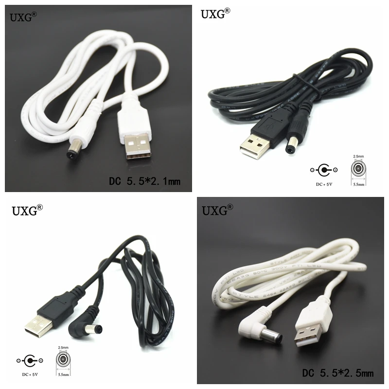Кабель питания с прямым углом, USB-штекер постоянного тока на 5,5 мм2,5 мм, 5 В, 2 А, 1 м, 3 фута, 2 м