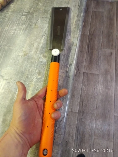 Прям как настоящая Риёба. Пилит не хуже тещи. Ручка обрезиненная, в руке не скользит. Полотно не люфтит. Заточка на каждом зубе одинаковая, очень ровная. на глаз идеальная.