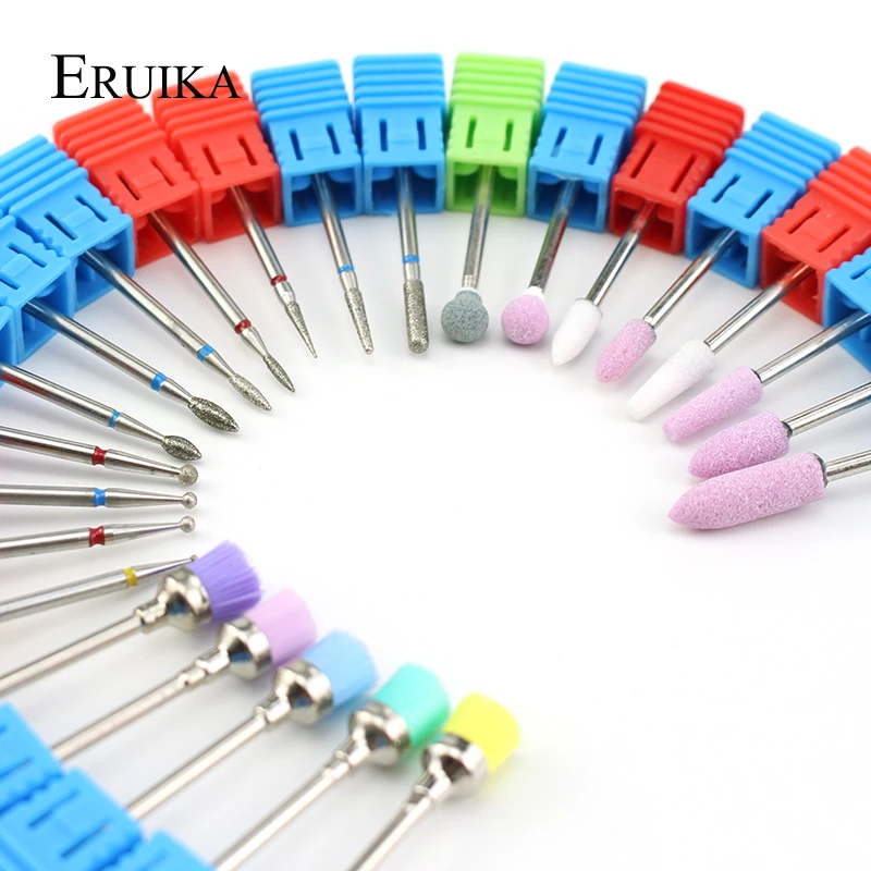 Алмазное сверло для ногтей ERUIKA, 24 типа, фрезы для маникюра, роторные заусенцы, аксессуары для электрической машинки, пилки для ногтей, щетка