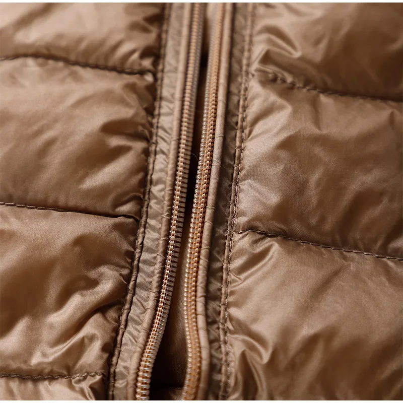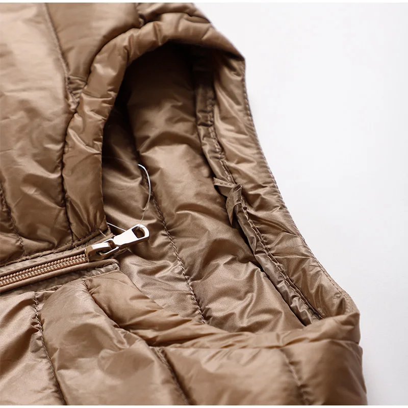 Отличная жилетка. Беру уже второй раз. Пух не лезет. Тонкая , но тёплая. Рекомендую.