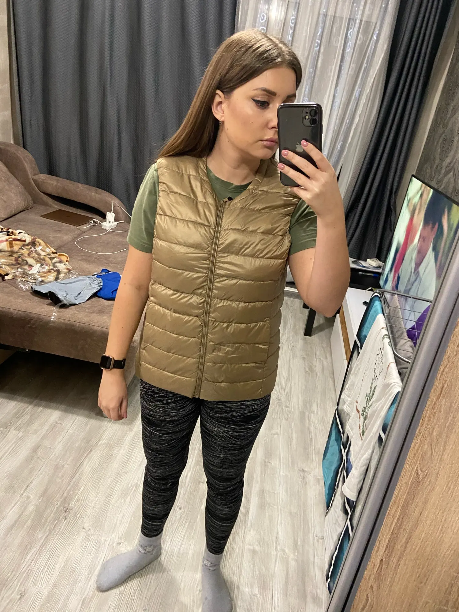 жилет очень понравился видно пух, на размер 42-44 размер L идеально