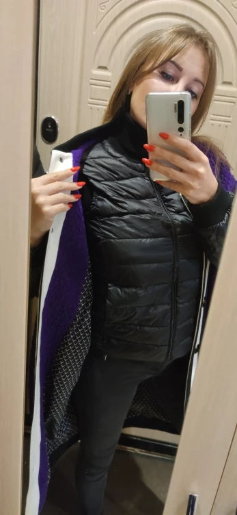 Жилетка не плохая, цвет соответствует. На размер S, взяла L, но с XL, было бы лучше, так только на тонкую кофту.