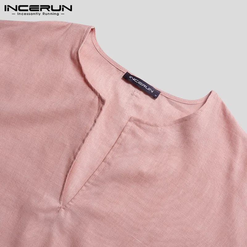 Футболка INCERUN мужская с длинным рукавом, повседневная свободная туника с глубоким V-образным вырезом, топ, одежда на осень