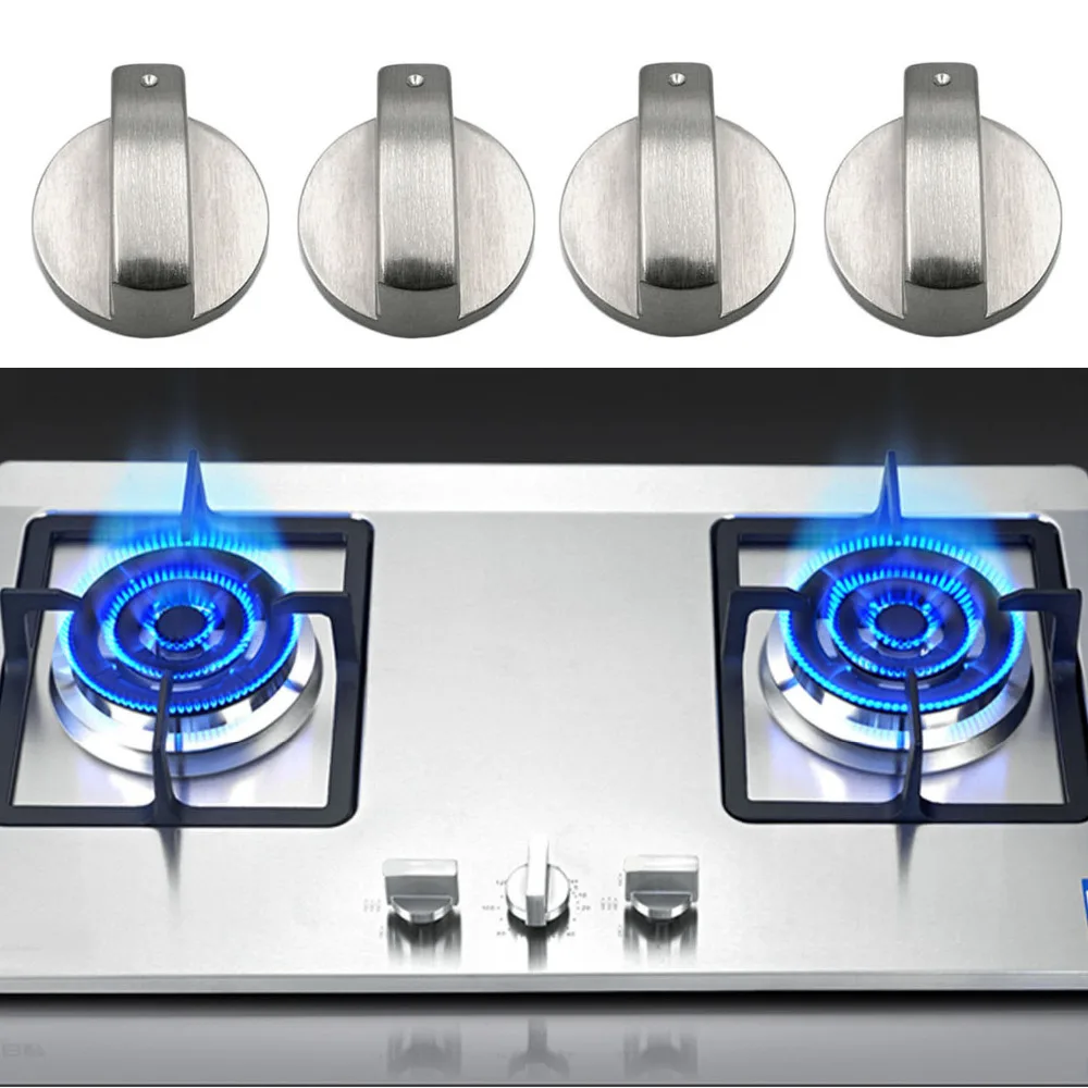 4 шт., металлические универсальные Серебристые ручки для регулировки газовой плиты, адаптеры, переключатели для духовки, блокировки поверхности, кнопка в сборе