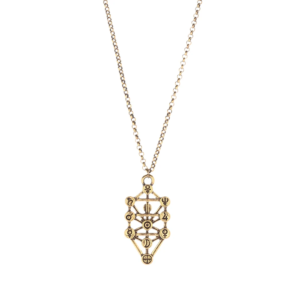 Длинное ожерелье с подвеской в виде диска с геометрическим рисунком