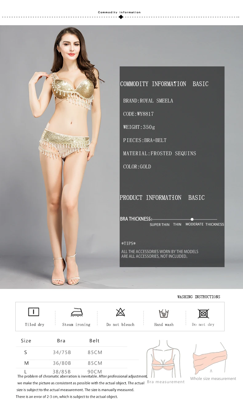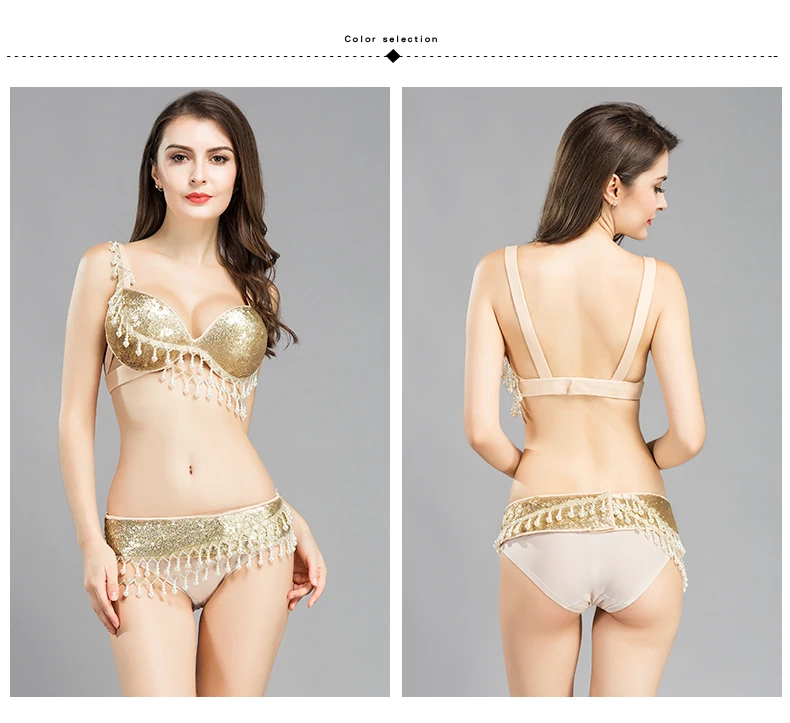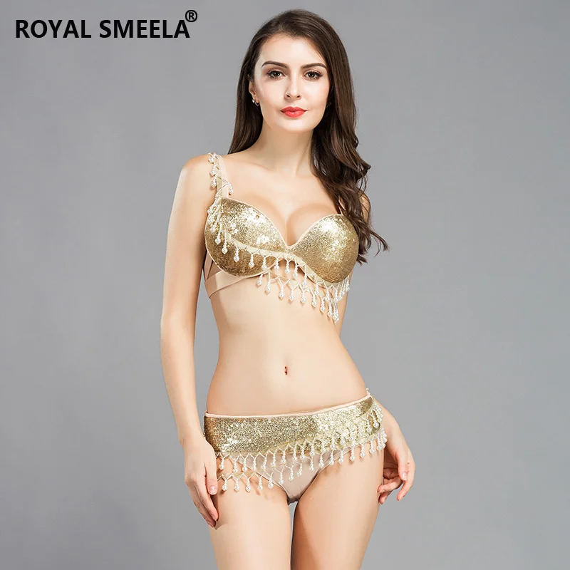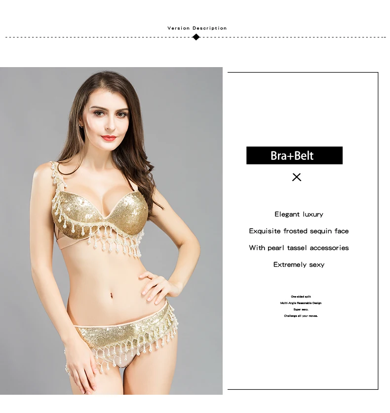 Женский костюм для танца живота, Привлекательный комплект из бюстгальтера с ремнем для танца живота, танцевальный костюм золотого цвета