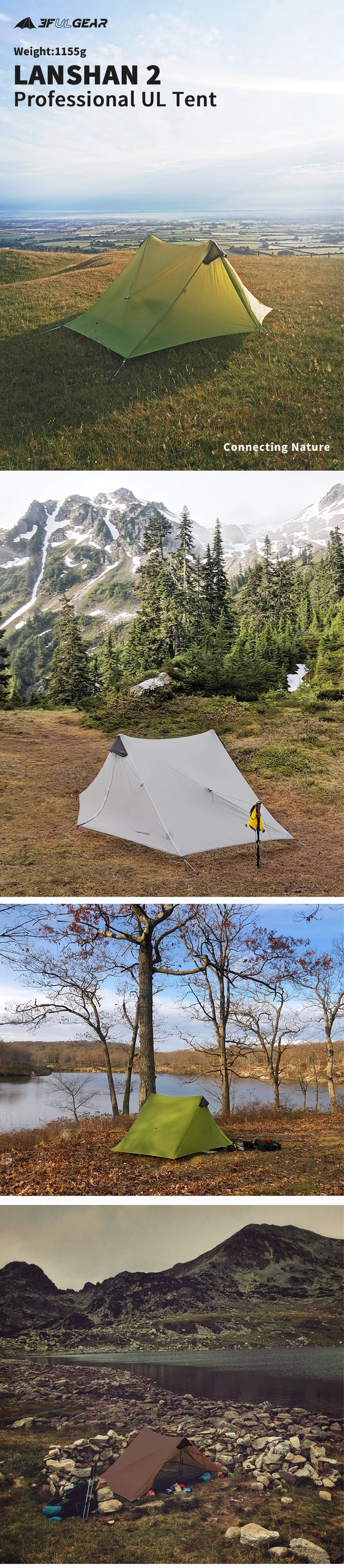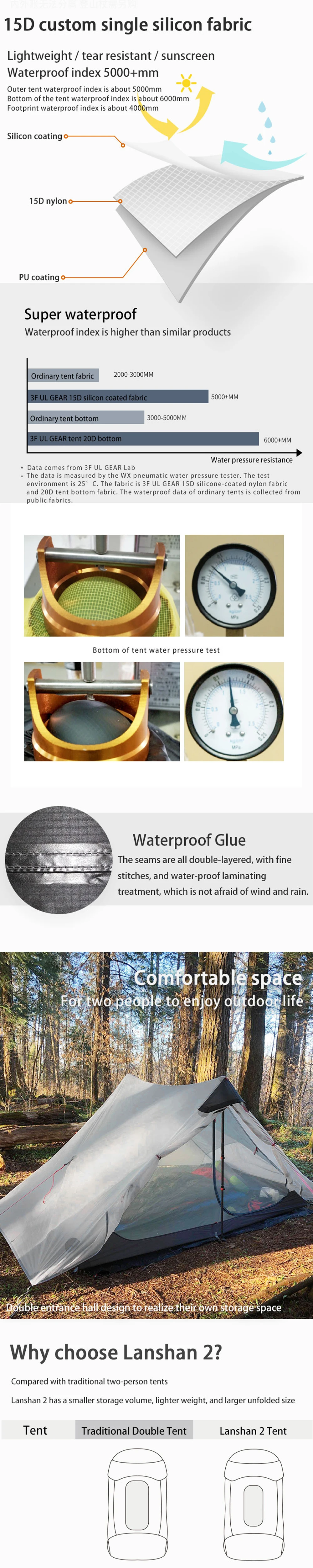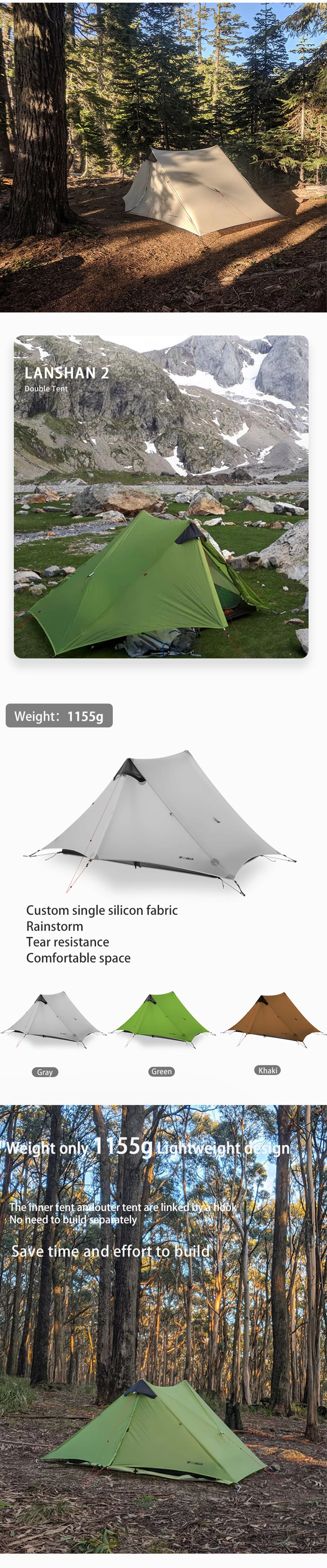 Ультралегкая туристическая палатка LanShan 3F UL GEAR, на 2 человек, 3-х сезонная, 15D, силиконовая, Всесезонная