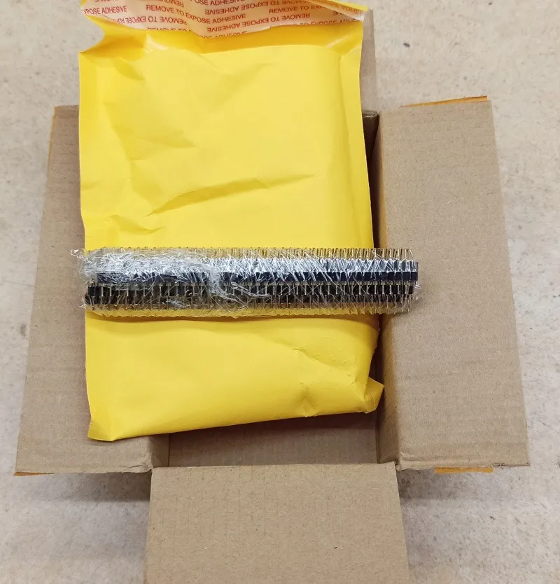 Товар доставлен быстро, всё 10 штук обмотаны стрейч пленкой и упакованы в мягком пакете и картонной коробке. Жёлтое покрытие, диаметр штырей со стороны пайки 0.59 мм с другой стороны 0.49 мм. Несмотря на хорошую упаковку несколько штырей были согнуты, при попытке их выровнять они ломаются на раз.