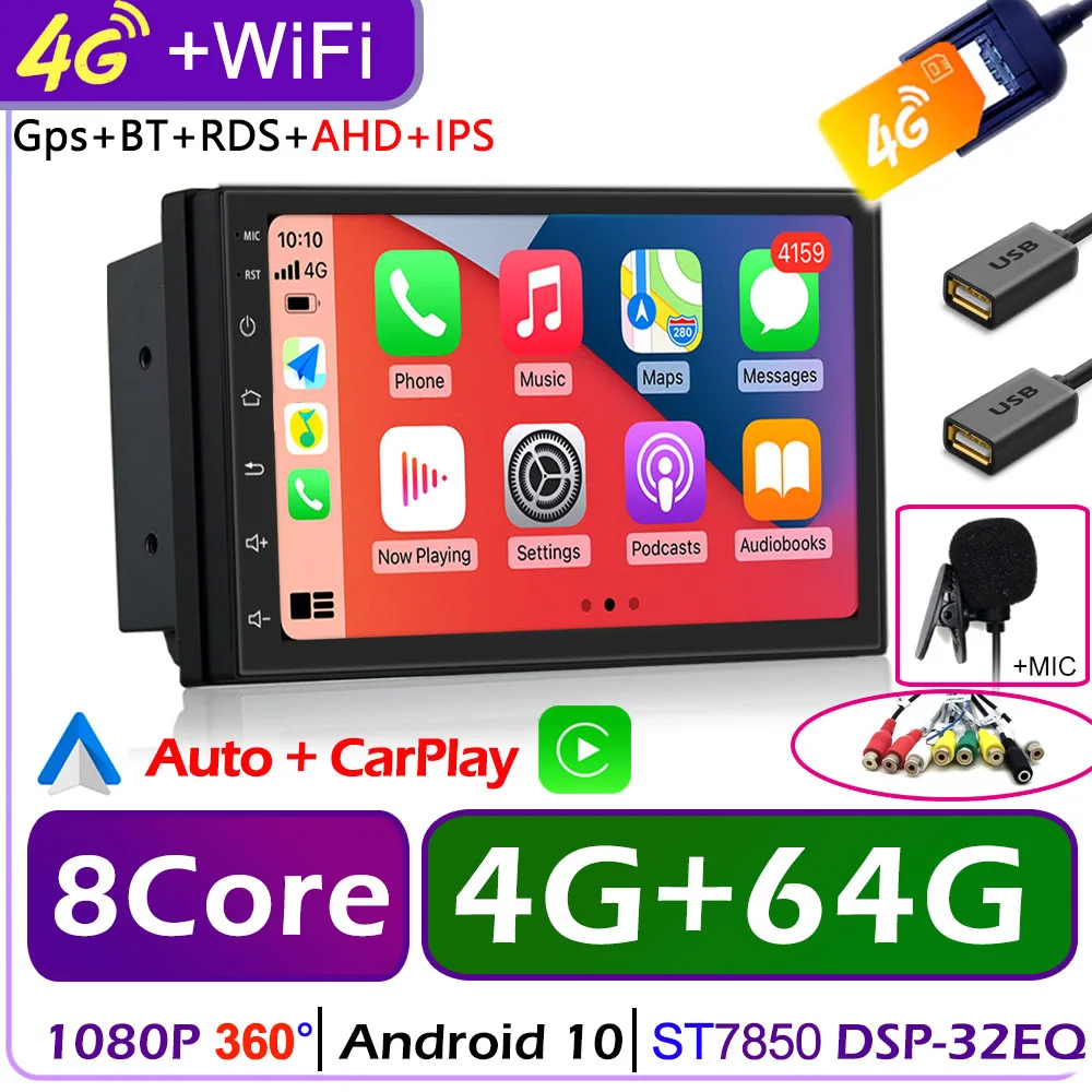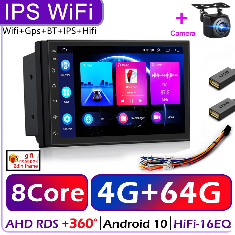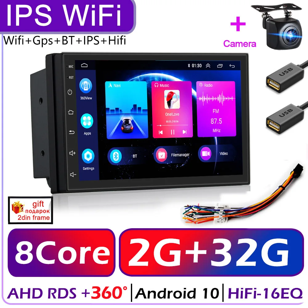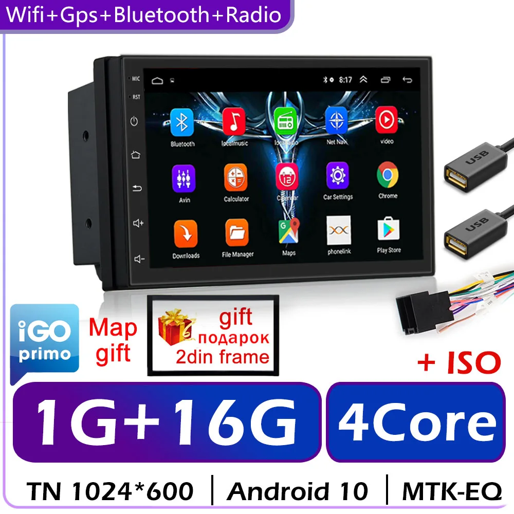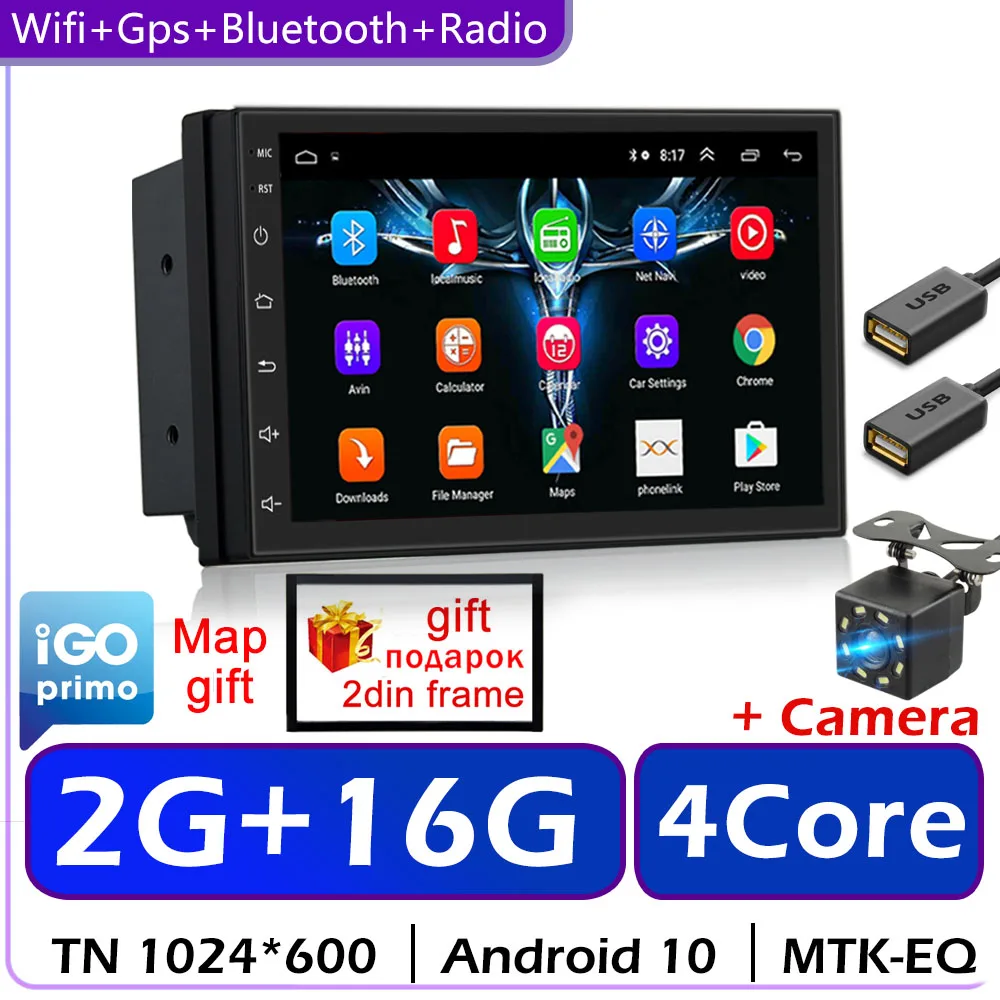 Автомагнитола 2 Din на Android 10, универсальный мультимедийный видеоплеер с 7-дюймовым экраном, GPS, для Volkswagen, Nissan, Hyundai, Kia, Toyota