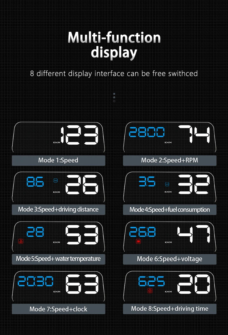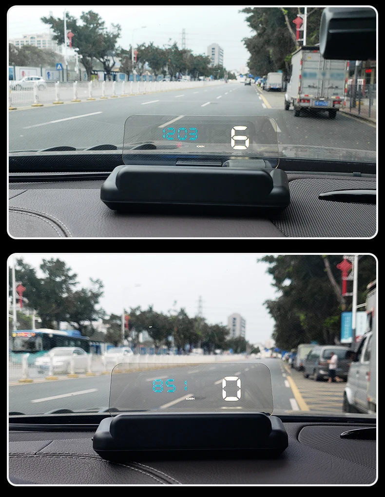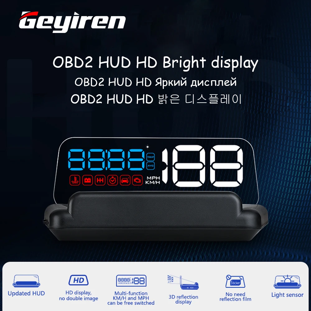 Автомобильное зеркало на лобовом стекле OBD2 HUD, цифровой проектор скорости, сигнализация, обновленная версия, температура масла Турбо давление