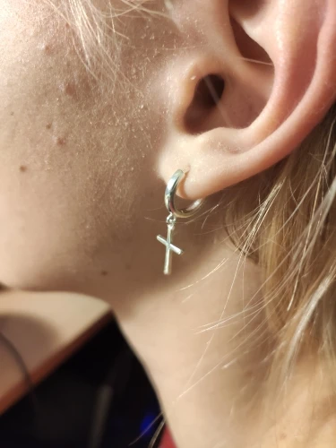 Серьги классные. Не очень большие. Место фиксации в дырке уха (хахах) очень широкое, может быть неприятно носить. Но они того стоят. Проба есть, но не знаю, настоящее ли серебро. Аллергии не вызвали. Слегка выгнутый крест, но это можно исправить. До спб дошли за 2 недели. Продавец отправил товар в день заказа.