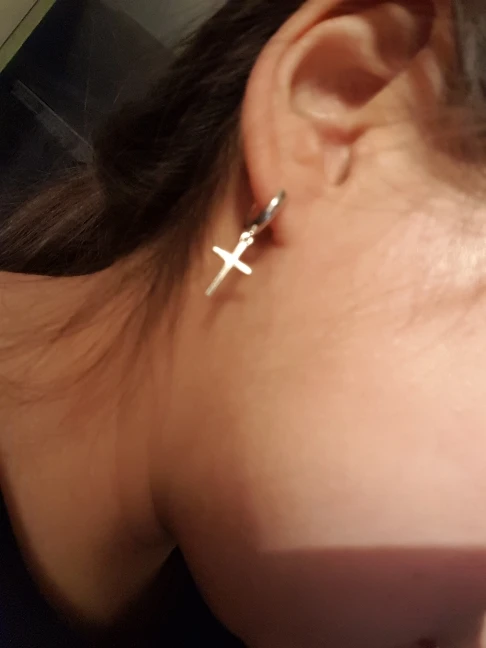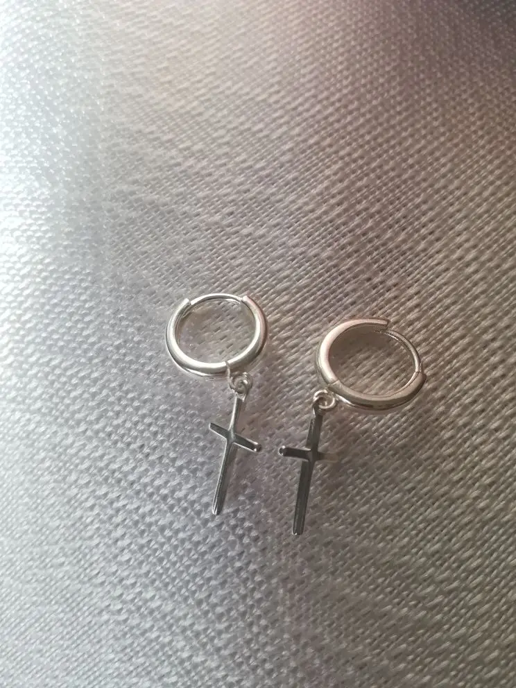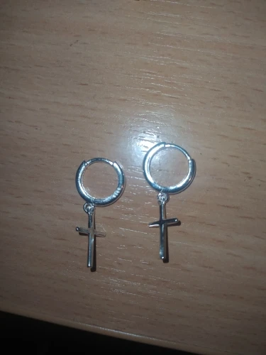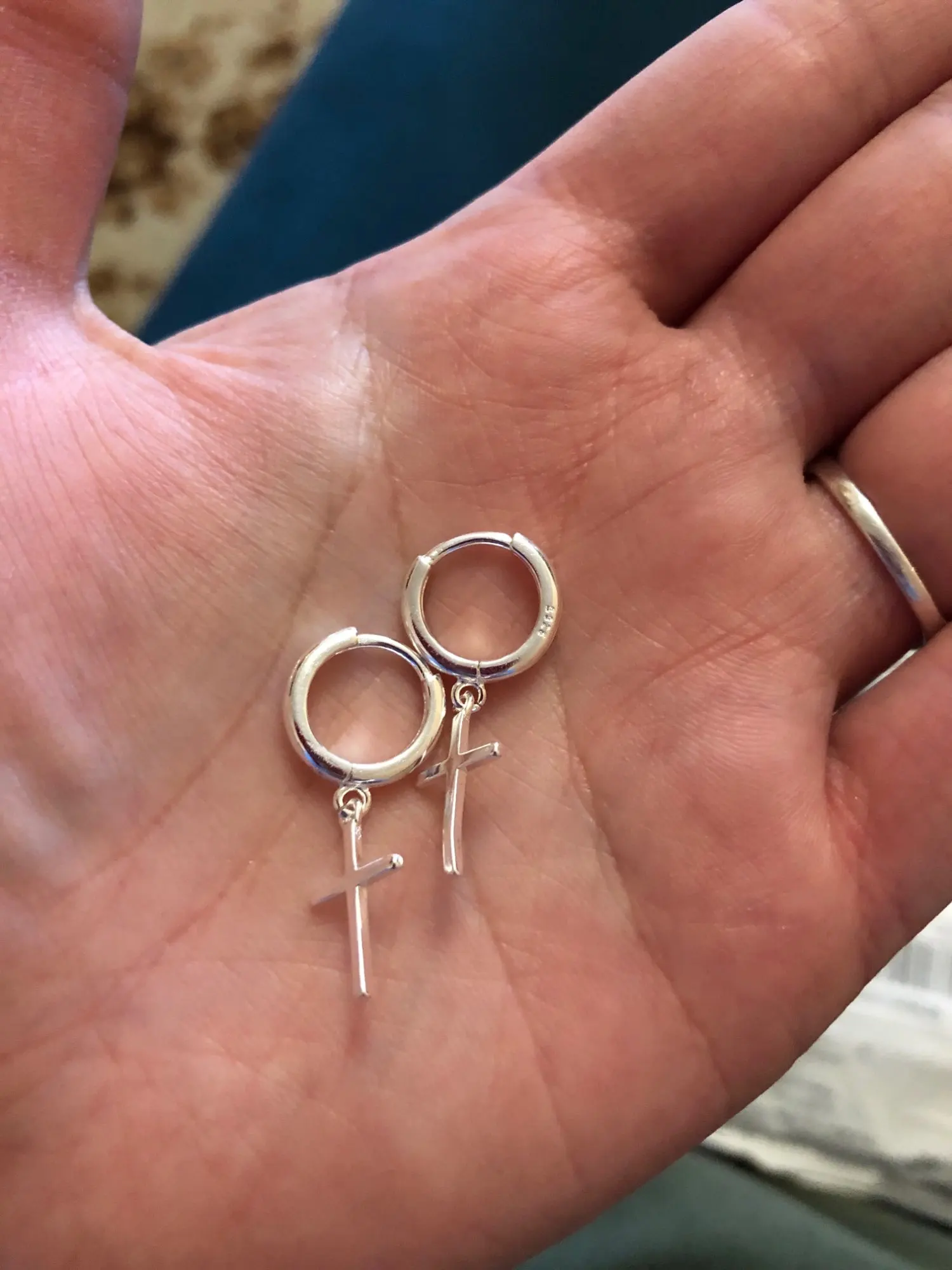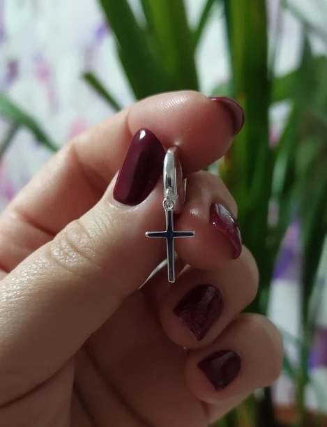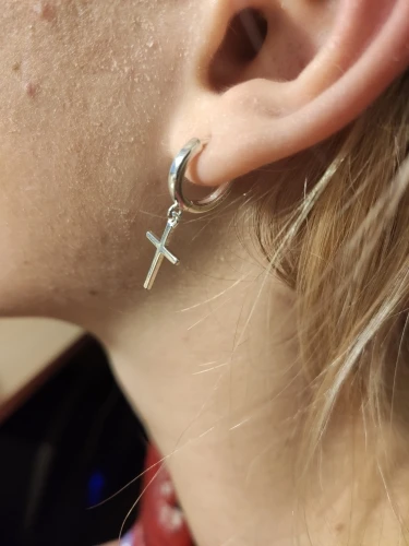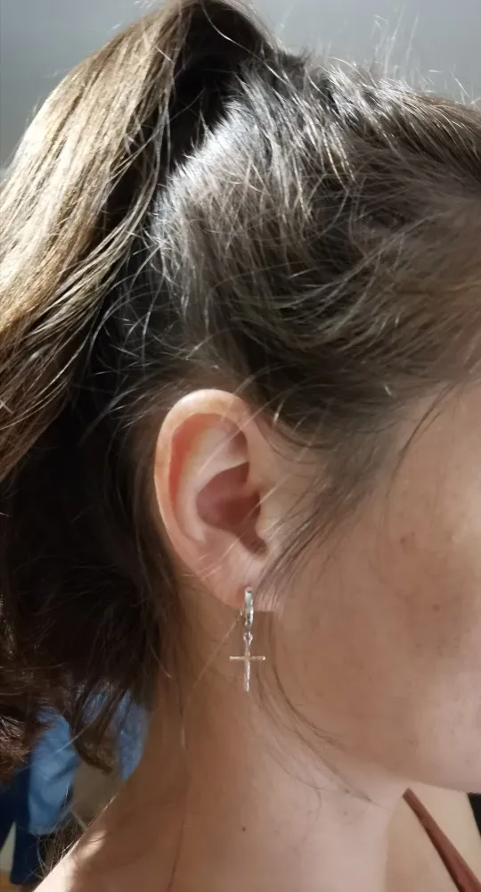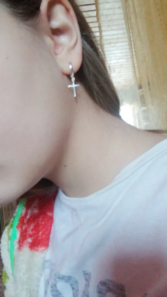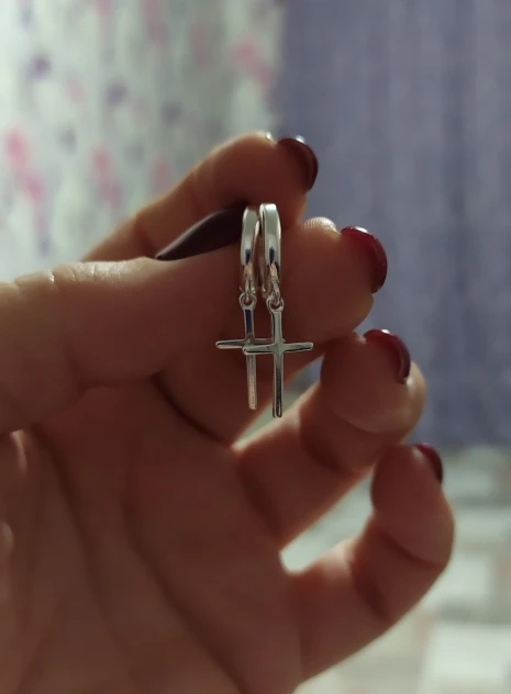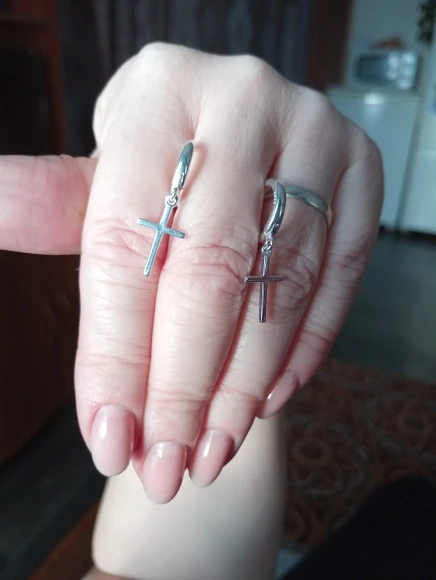 Очень милые серёжки. Насчёт серебра не знаю, но и стоят они не дорого, поэтому не принципиально. уши не болят и не чернеют как от бижутерии. по размеру малышки, но больше и не надо, крестик примерно 1,5 см и столько же колечко, итого около 3 см