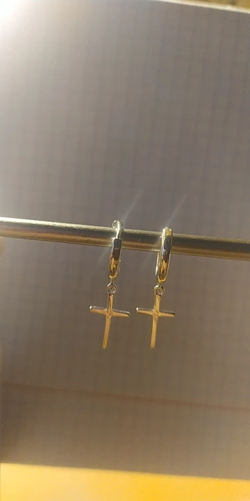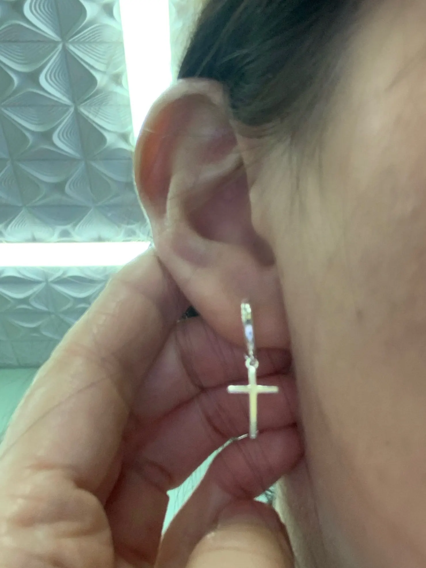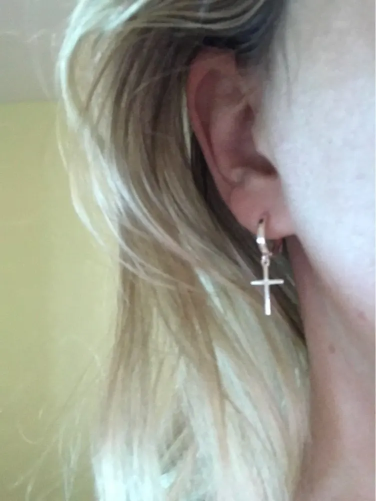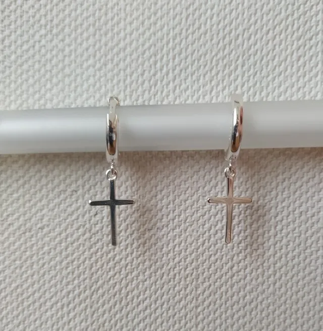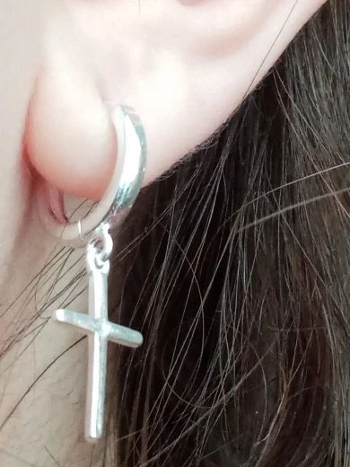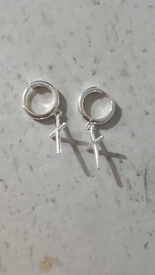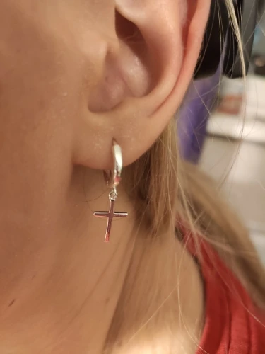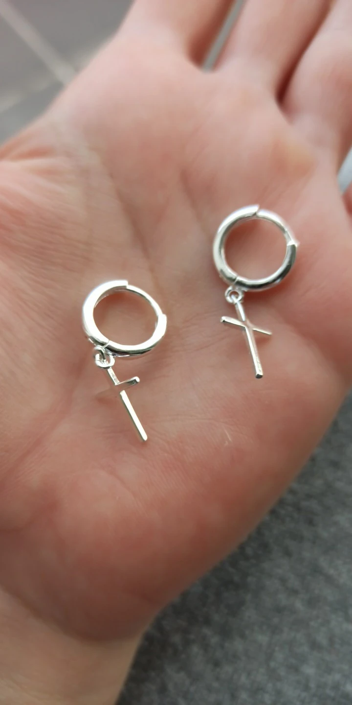 Очень милые серёжки. Насчёт серебра не знаю, но и стоят они не дорого, поэтому не принципиально. уши не болят и не чернеют как от бижутерии. по размеру малышки, но больше и не надо, крестик примерно 1,5 см и столько же колечко, итого около 3 см