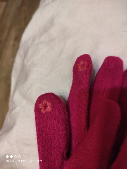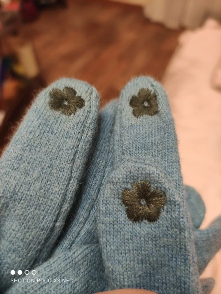 Хорошие перчатки. Тонкие, на осень как раз. На пальцах цветочки для смартфона. Цвет темный шоколад. Не понравилось, что внутри на узоре остатки картона плюс дороговаты. Похожие на рынке можно купить за 200-300 рублей. Доставка очень быстрая.