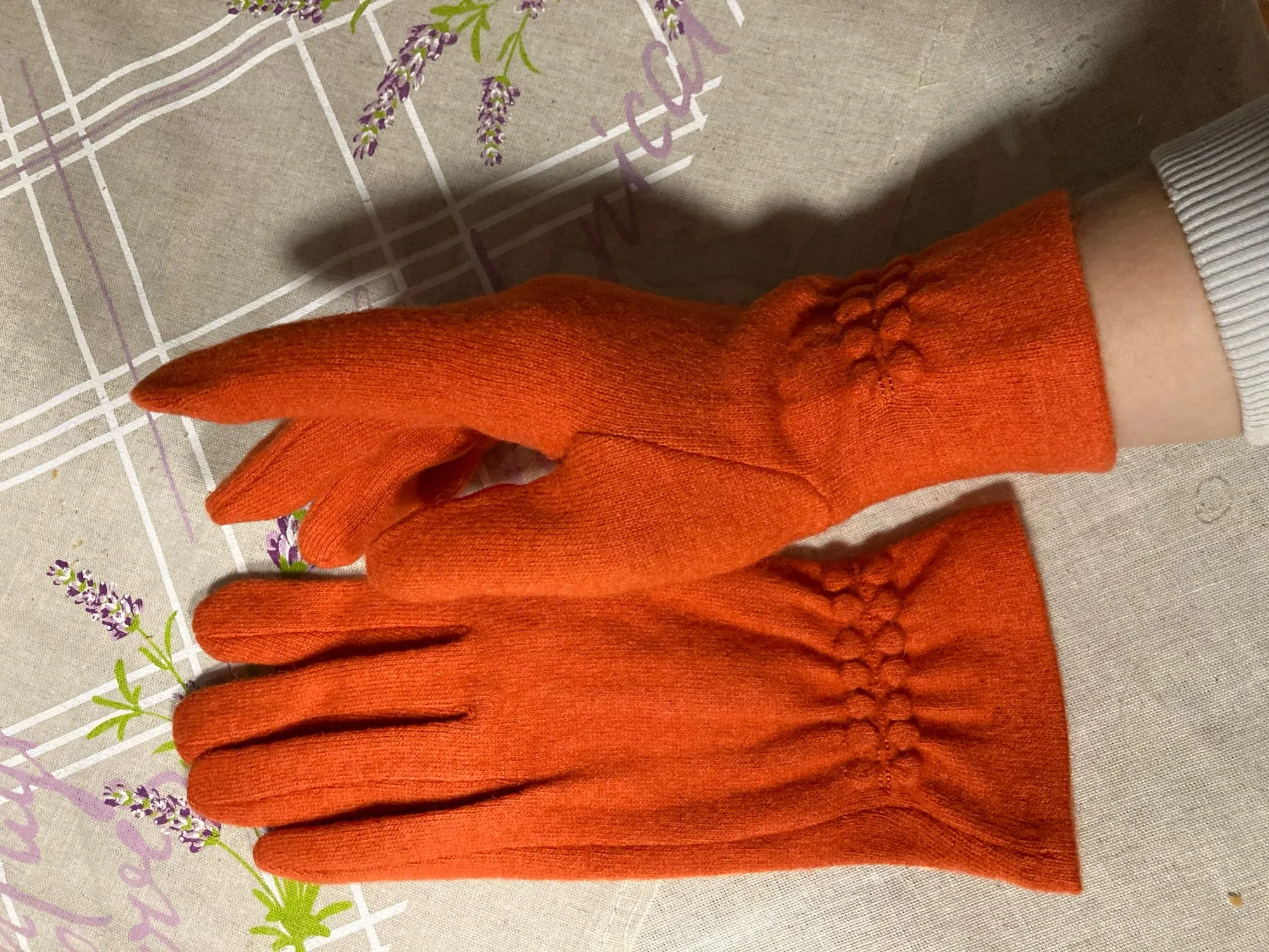 Мягкие, насыщенный цвет, красивые. Похоже на шерсть, на бирке состав написан иероглифами. Тоненькие, подкладки нет. Пальцы у перчаток длинные (а мизинец даже великоват, но для меня не критично), скорее на узкую руку. Можно заказывать, заказала бы ещё в другом цвете! Общаться с продавцом не пришлось. Доставка около двух недель до МО.
