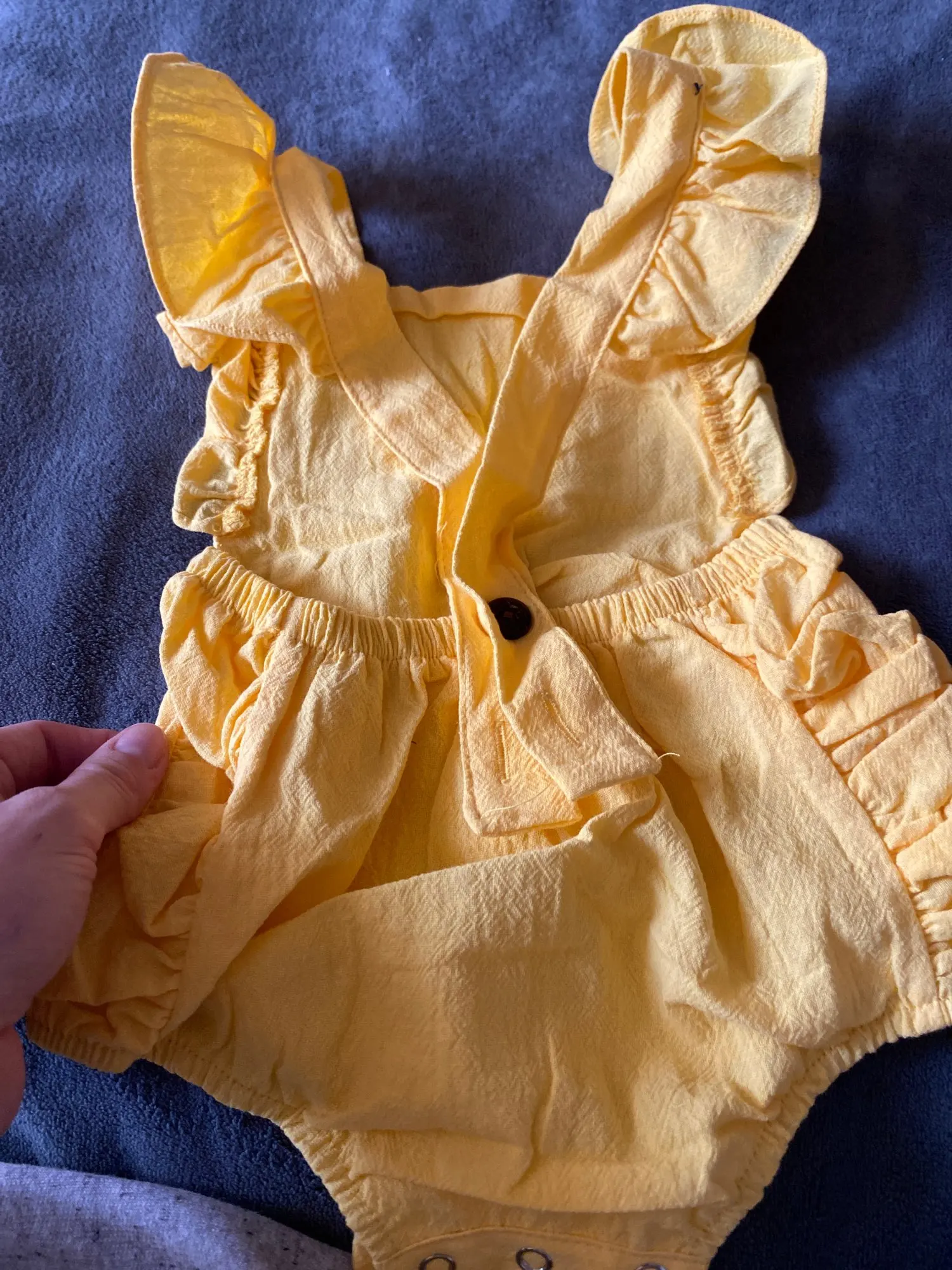 Как и все описания AliExpress, это довольно плохо. Изображения одежды на спине не отображаются. Ремни имеют 2 положения, чтобы прикрепить их к кнопке. Одежда такая же, как на картинке, тонкая, свежая ткань, цвет как на фотографии. Очень мило. Одежда 5 звезд, хотя я бы поставил кнопку внутрь, чтобы вы не могли повесить ремни снаружи, у нее есть простое решение. I Think The SIZE IS correct, I ordered 24 months For A Baby This Summer Will spend 18-24 months, теперь через 15 месяцев ремни немного большие, но резины внизу не сжимаются.