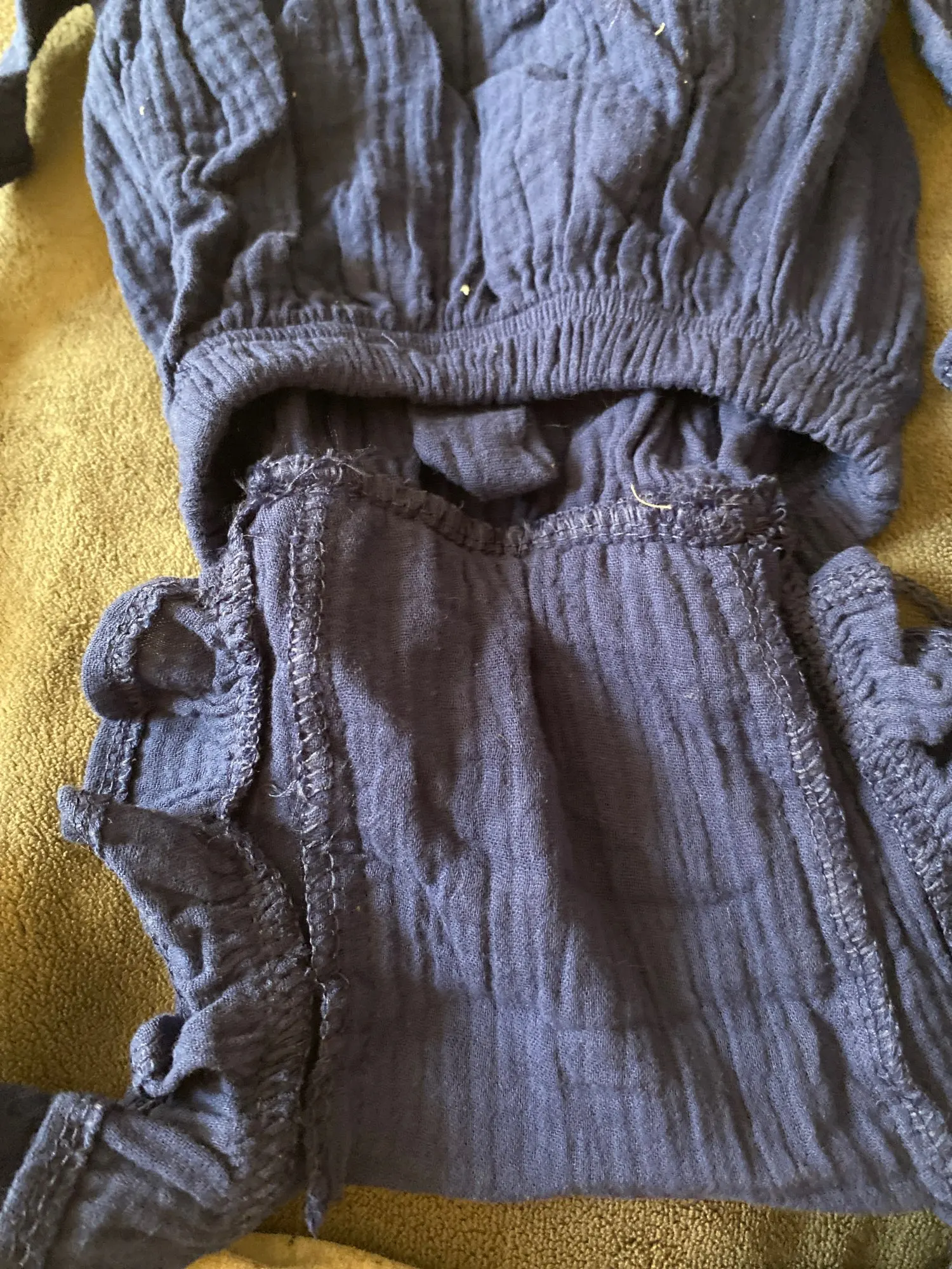 Само качество товаро неплохо, очень странно, покупала два боди - один вроде ничего, а другой ну просто отвратно!!! При этом ткань то сама хорошая( очень жаль. Что так отнеслись к пошиву. И да(, в описании не сказано, что спинка совсем голенькая, и маломерка, покупала на лето на 12 мес- явно мал будет!