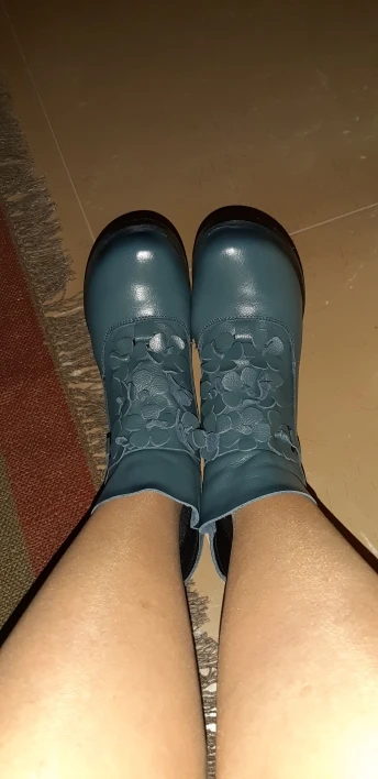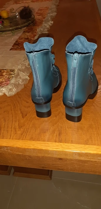 спасибо ВАМ большущие. Ботики очень красивые,удобные,сделаны хорошо. Доставка 2 недели.Синий цвет приятный. Размерная сетка соответствует