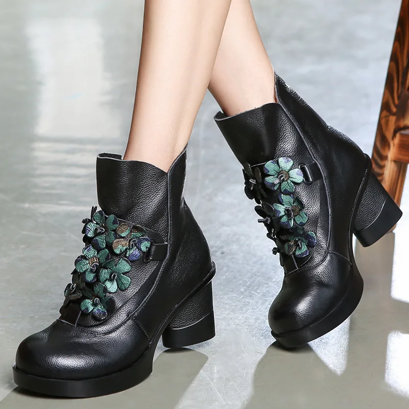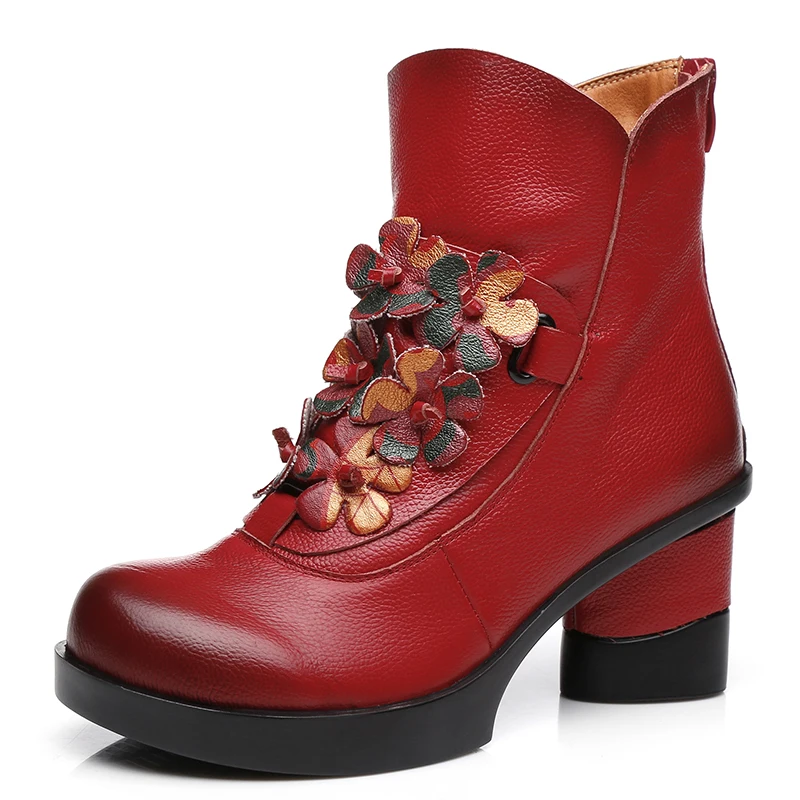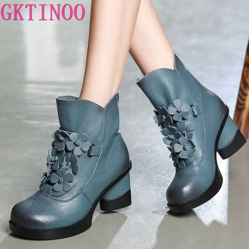 Ботинки женские из натуральной кожи, на толстом высоком каблуке, ручной работы, на осеньзиму