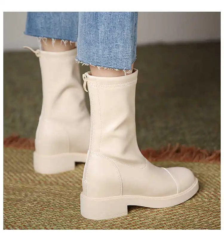 Женские ботинки с острым носком, Зеленые Плюшевые ботинки до щиколотки, зимняя обувь для женщин, осенние кожаные ботинки на высоком каблуке с металлической молнией, женские