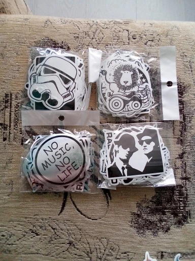 Мгновенно отправили и очень быстро дошло. Каждый набор был упакован в отдельный пакет. Качество наклеек отличное, принты и размер соответствуют описанию. Особенно понравились метализированные чёрно-белые наклейки. Продавец положил нескольько наклеек в подарок, приятно :)