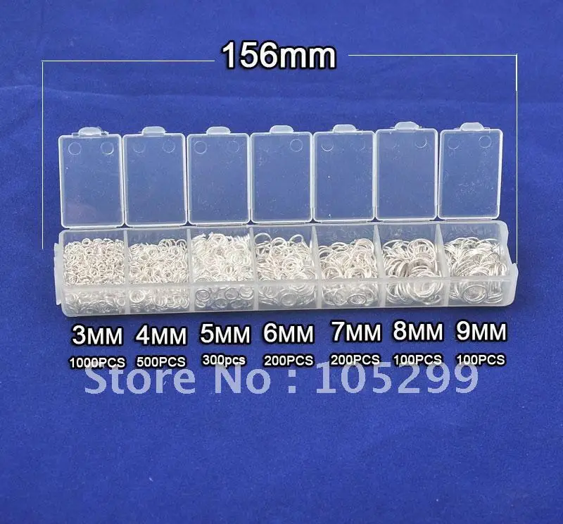 Смешанные 2400 шт. 3-4-5-6-7-8-9мм Серебристые детали для переходных колец, фурнитура в коробке для разъемов, быстрая доставка