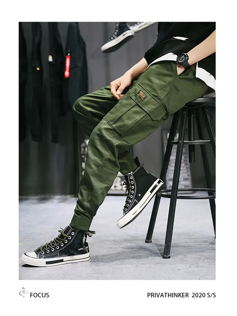 Privathinker уличные мужские брюки карго 2022 корейские мужские повседневные джоггеры с боковыми карманами черные шаровары брюки с эластичной резинкой на талии