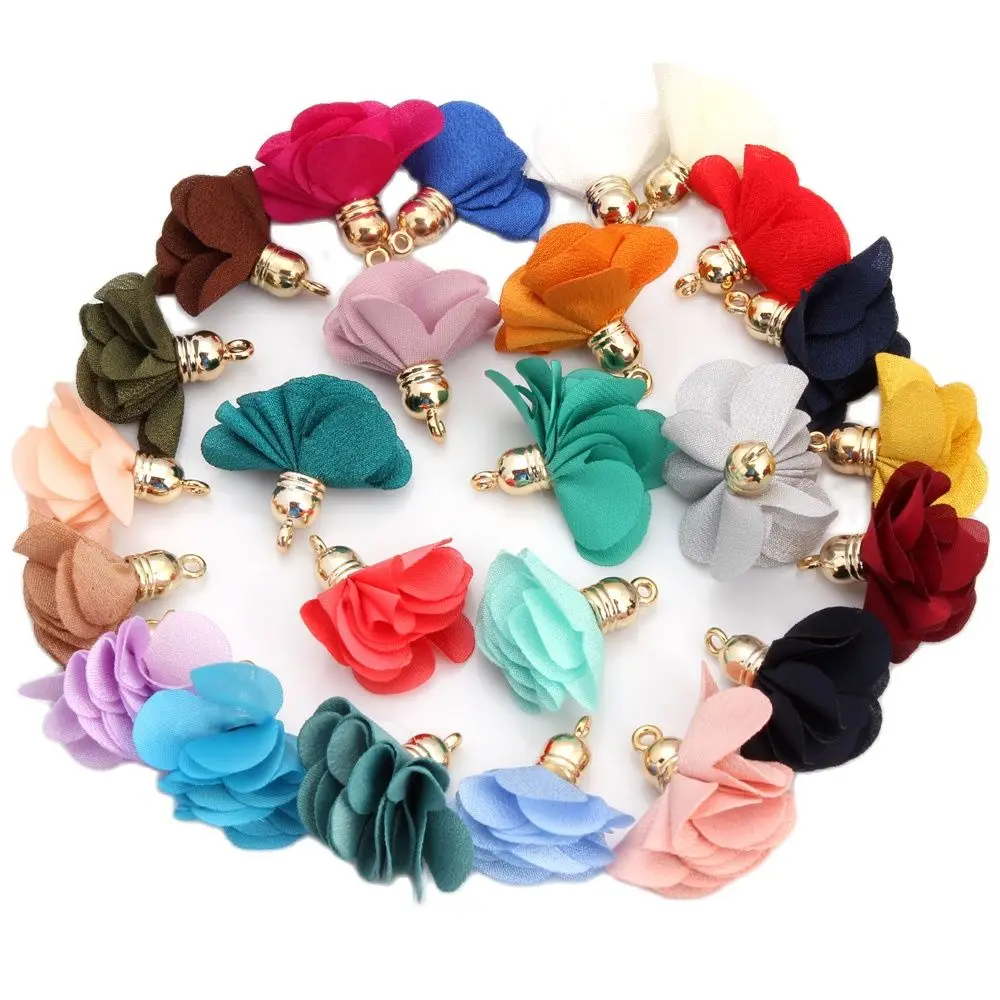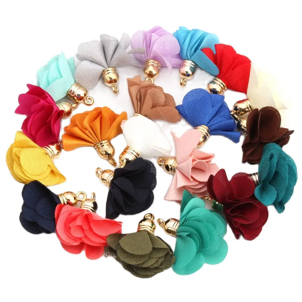 OlingArt 30 мм 12 шт. Золотая шляпа смешанных цветов хлопок шелк атлас кисточка ожерелье серьги DIY Изготовление ювелирных изделий брелок Подвески