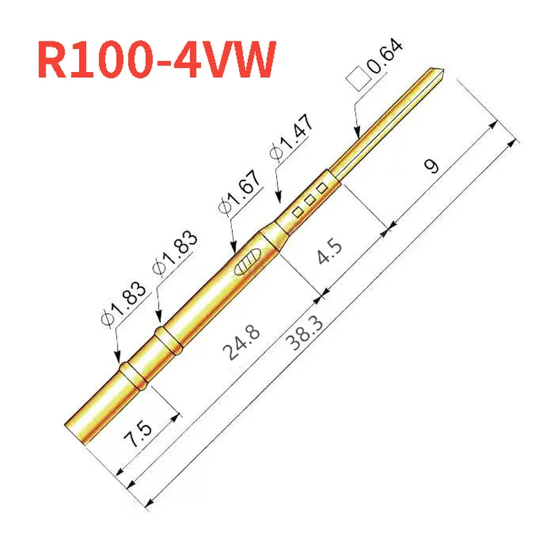 100 шт.упак. R100-4VW тестовая игла рукав 7,5 мм двойное защелкивающееся кольцо 38,3 мм Общая длина зонда сиденье
